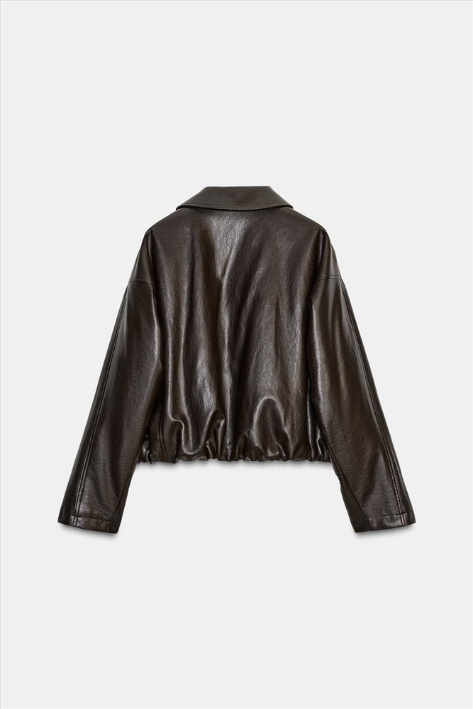 Bomber jacket with a lapel collar and long sleeves. Featuring front welt pockets and an elasticated hem. Zip-up front. COMPOSITION, CARE & ORIGIN COMPOSITION OUTER SHELL BASE FABRIC 87% viscose COATING 100% polyurethane LINING 100% polyester FILLING 100% polyester Which contains at least: LINING 100% RCS certified recycled polyester FILLING 100% RCS certified recycled polyester CERTIFIED MATERIALS RCS CERTIFIED RECYCLED POLYESTER Nowadays, recycled polyester is mainly made from PET plastic waste. This is a type of plastic that is widely used in a variety of items, such as plastic bottles. Using recycled materials helps limit the production of virgin polyester fibre. It is certified to the Recycled Claim Standard (RCS), which verifies the recycled content and tracks it from source to final product. Certified by Intertek 193341 More information CARE Caring for your garments to extend their useful life. To keep your jackets and coats clean, you only need to air them out and go over them with a cloth or a clothes brush. This process is gentler on fabrics and helps to reduce the impacts of washing.