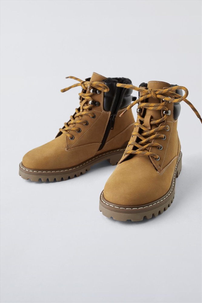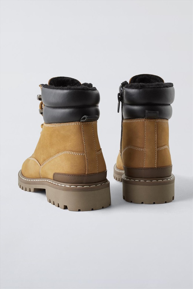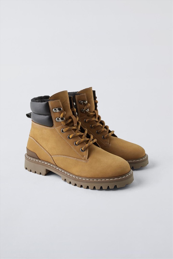 Cowhide leather hiking boots. Fastening with adjustable laces and side zip. Back pull tab for slipping on with ease. Flexible insole. Faux shearling lining. Ridged rubber sole. COMPOSITION, CARE & ORIGIN COMPOSITION UPPER 95% cow leather LINING 100% polyester SOLE 100% sbs INSOLE 100% polyester TONGUE 100% cow leather