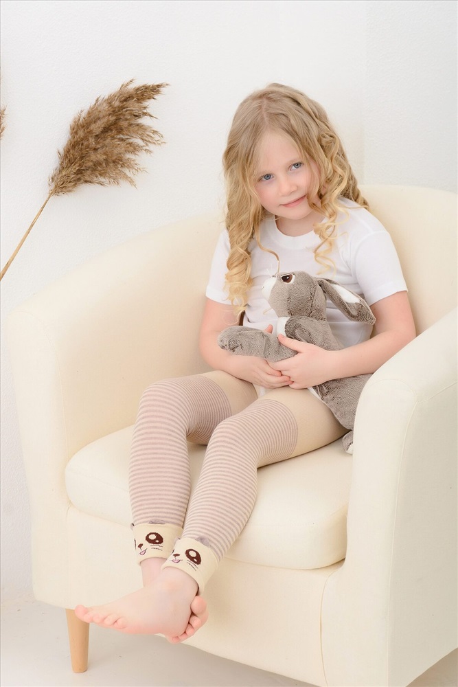 ID товара: 883179 Состав: 72% Хлопок, 26% Полиамид, 2% Эластан Сезон: Весна/Лето Фасон: Облегающий Посадка: Средняя Основная ткань: Вязаный трикотаж Стиль: Повседневный Страна бренда: Россия Страна производства: Россия Очаровательные леггинсы для девочек. По всей длине вывязаны полосы, снизу - однотонный отворот с ушками и мордочкой, сзади надпись Комментарии к товару