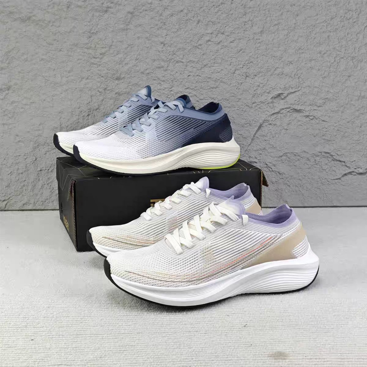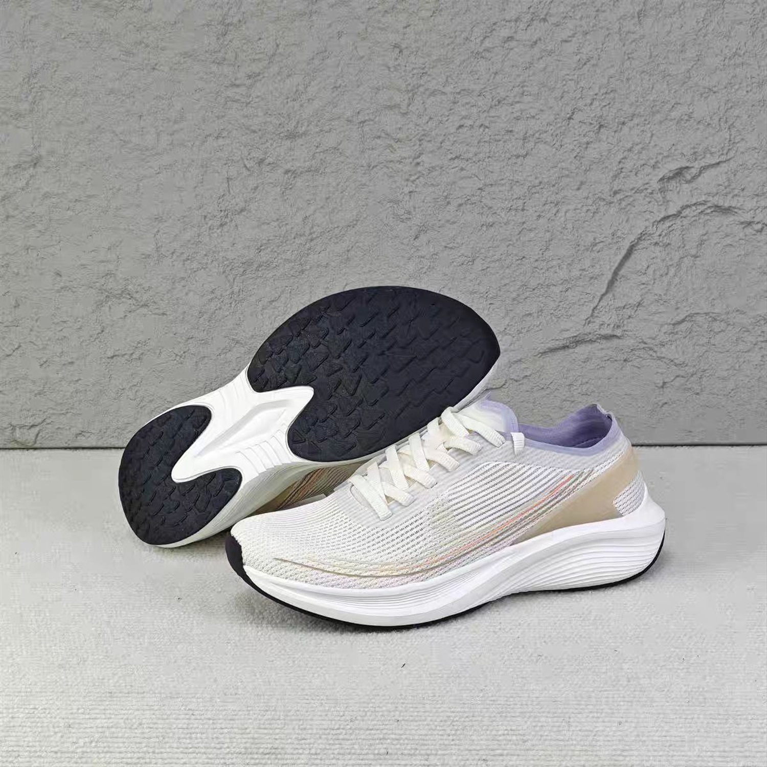 Верх выполнен из дышащего материала Ice Silk с сетчатой ​​вставкой. Промежуточная подошва изготовлена ​​по передовой технологии с амортизирующей средней толщиной (MD) и резиновой нескользящей подошвой. Некоторые модели поставляются без оригинальной стельки, с другими стельками