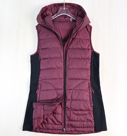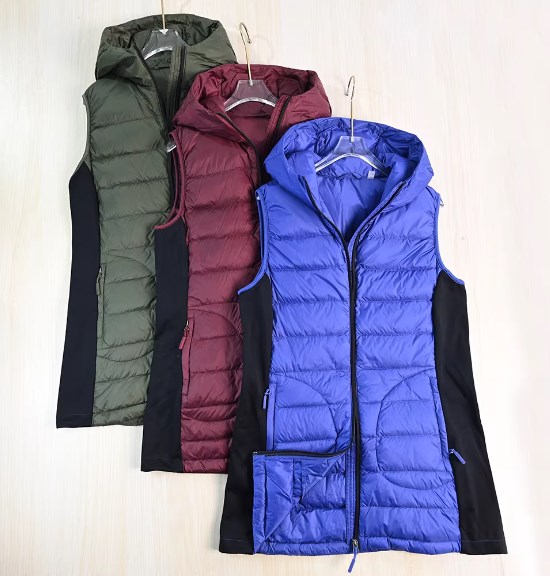 Легкий пуховый жилет средней длины из белого утиного пуха (90%) с капюшоном