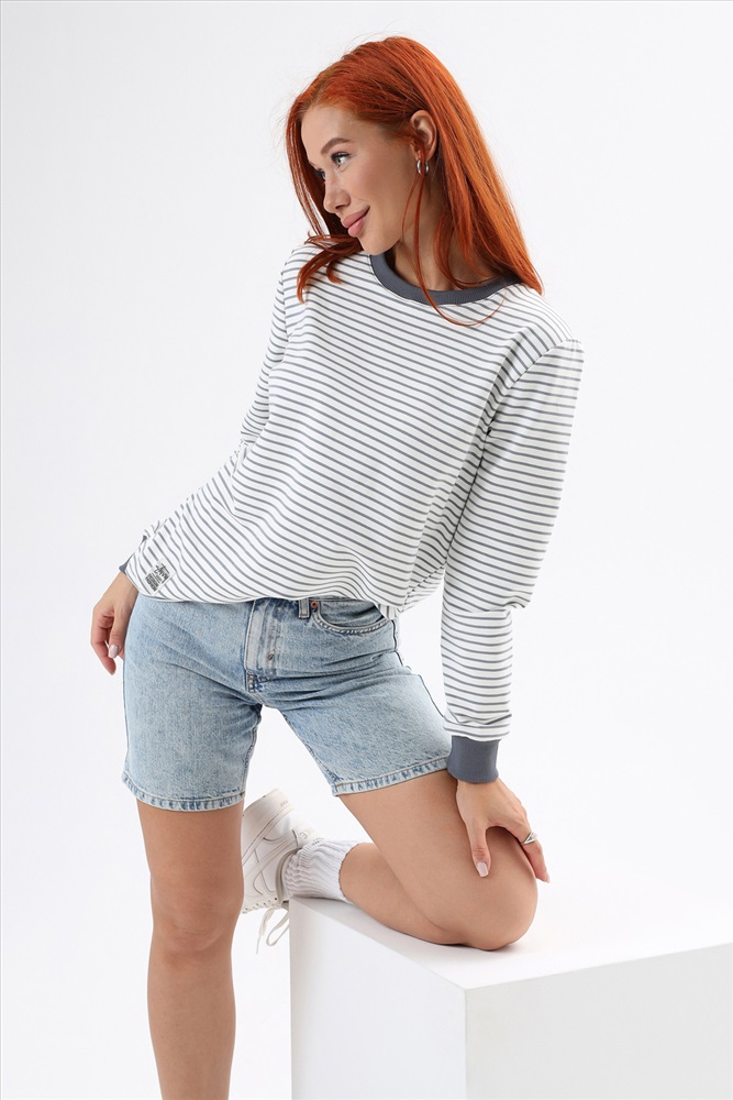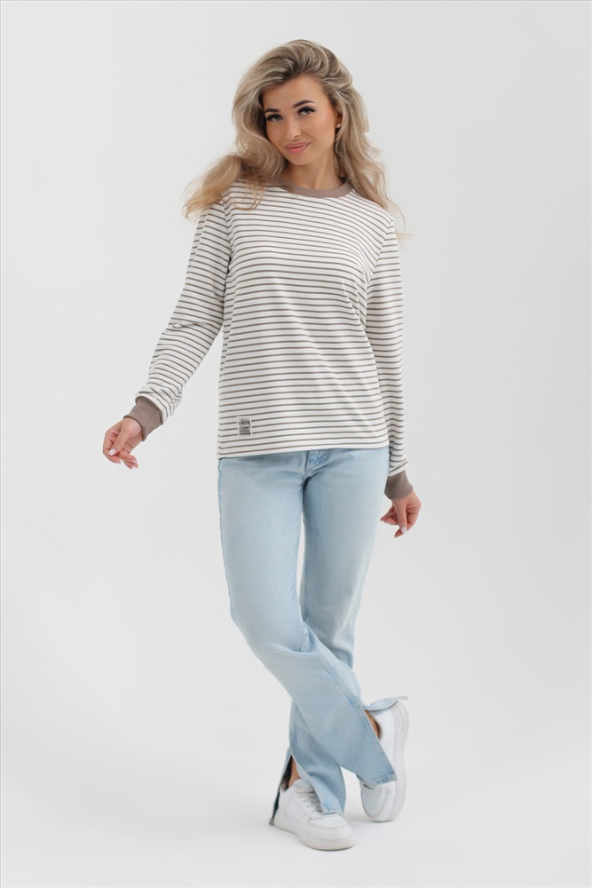 Застежка: без застежки Представляем вашему вниманию стильный женский хлопковый лонгслив в полоску, который станет отличным дополнением к вашему гардеробу. Особенностью этого лонгслива является его состав, который состоит из 92% хлопка, а также, 8% лайкры. Классический лонг с длинными рукавами и круглым вырезом под горловину удобен для повседневного ношения. Полосы вязанные.