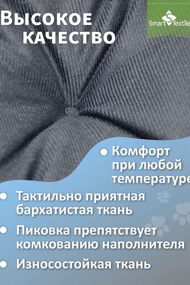 Состав: наполнитель 80% ПЭ 20% хб, чехол 100 % ПЭ Модель: Лежанка для кошек и собак МурГав. Размер- 40*60см. Чехол- велюр Тип товара: лежаки для животных Материал: велюр | грета | грета | велюр Бренд: Smart Textile Рисунок: однотонные Сезонность: лето | осень | весна | зима Лежанка МурГав Теплый Уголок для Вашего Любимца! Подарите своему питомцу его личный островок комфорта и уюта! Лежанка МурГав это не просто место для сна, а безопасная и мягкая территория, где кошка или собака может расслабиться, сладко потянуться и насладиться крепким сном. Созданная с любовью к животным, она сочетает в себе нежную мягкость, долговечность и практичность, которую оценят хозяева. Почему питомцы в восторге от МурГав: Идеальный размер 40х60 см: Достаточно места, чтобы свернуться калачиком или вытянуться в полный рост. Подходит для большинства кошек и небольших собак. Невероятно мягкая поверхность: Чехол выполнен из уютного велюра в сочетании со смесовой тканью. Он невероятно приятен на ощупь и сохраняет тепло, создавая идеальные условия для отдыха. Комфорт и поддержка: Упругий и эластичный наполнитель файбер (высококачественный полиэстер) отлично держит форму, обеспечивая оптимальную поддержку суставам вашего питомца. Практичность для хозяина: Лежанка легко чистится. Наполнитель быстро восстанавливает объем. Пусть у вашего мурчащего или виляющего хвостиком друга будет свое собственное комфортное гнездышко! Лежанка МурГав где рождаются самые сладкие сны. Таблица размеров и веса