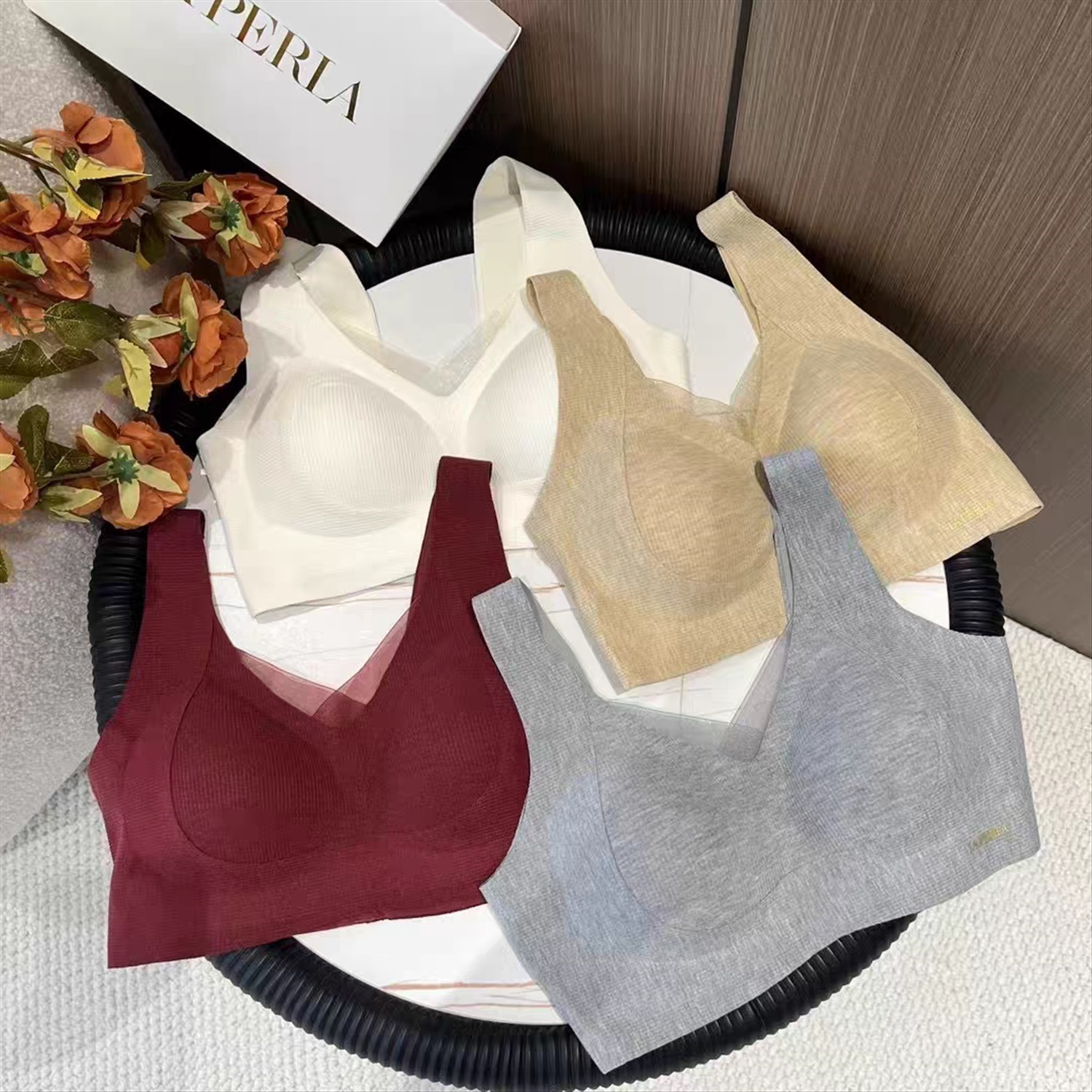 Бюстгальтер P115 laper black с минималистской бесшовной текстурой. Минималистская бесшовная текстура ткани, вафельная текстура, более продвинутая, чем сплошной цвет