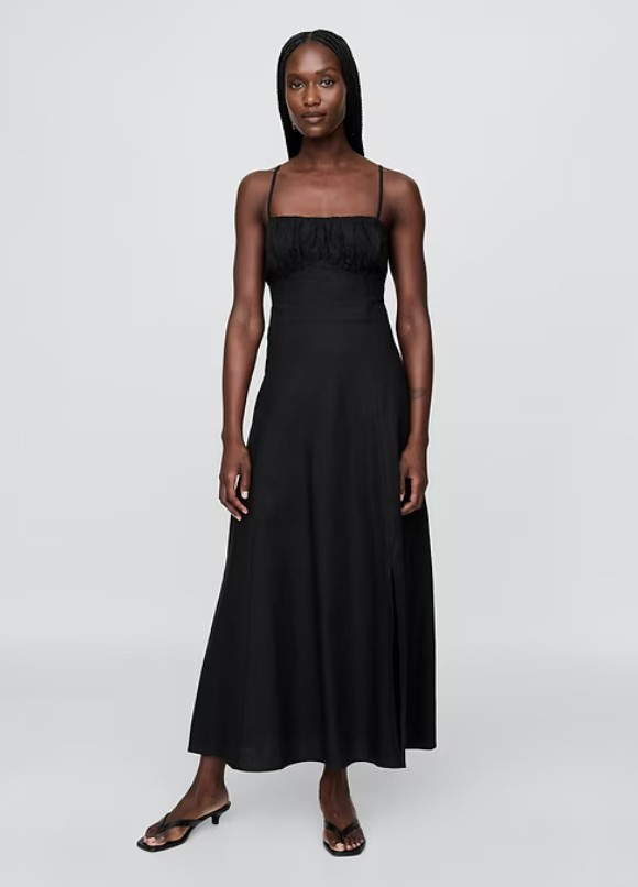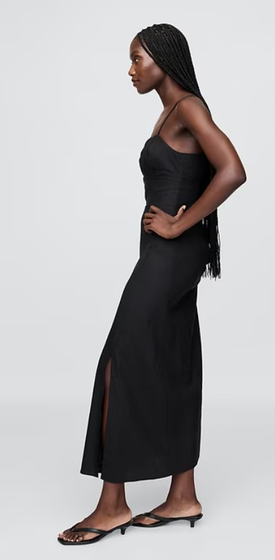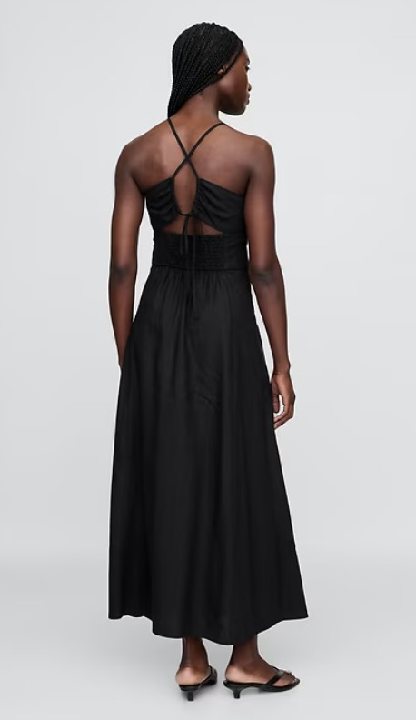 Linen-Blend Shirred Bodice Maxi Dress