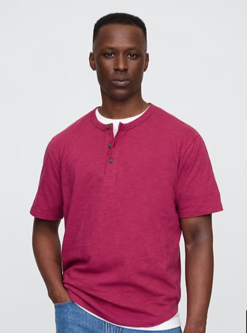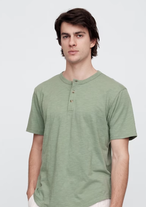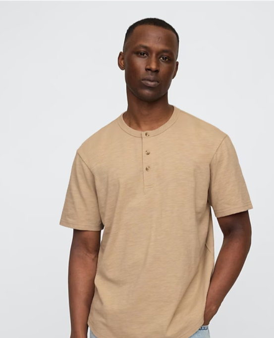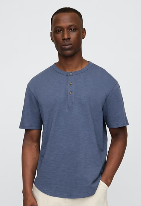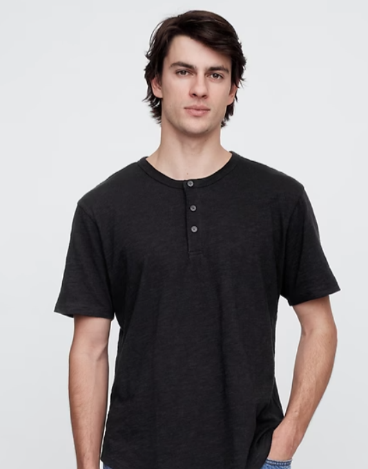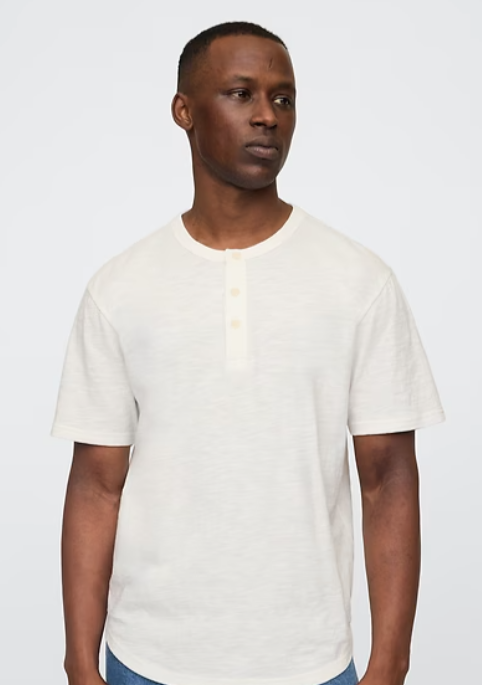 Lived-In Relaxed Curved Hem Henley T-Shirt