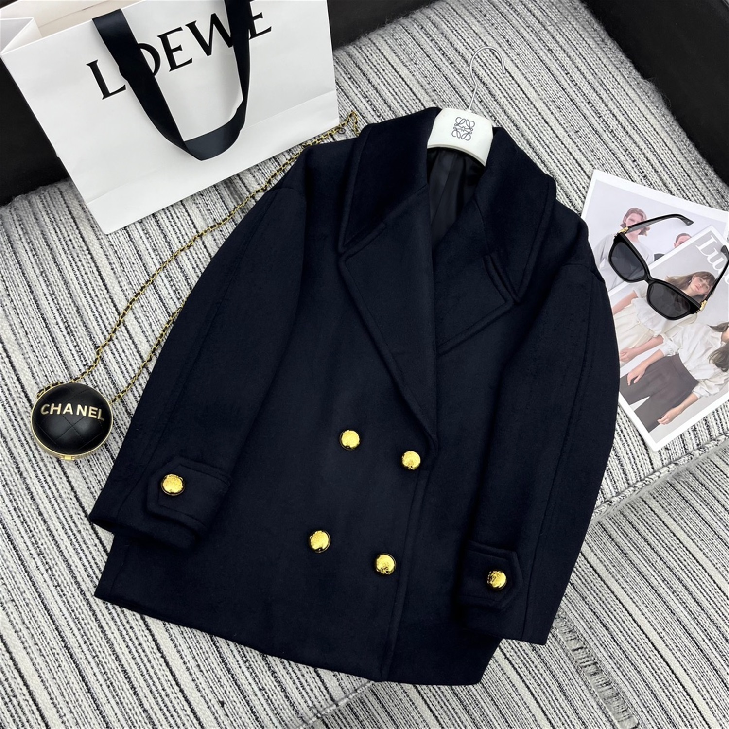 LOE * новое шерстяное пальто средней длины с большими лацканами YB металлическая пряжка с логотипом супер аутентичный темно-синий элитная атмосфера