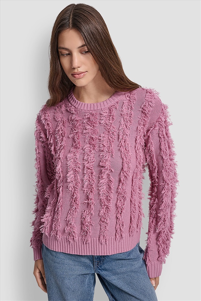 LONG SLEEVE CREW NECK WITH FRINGE STITCHING