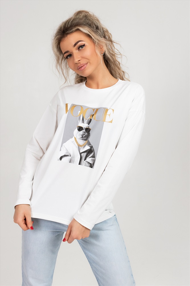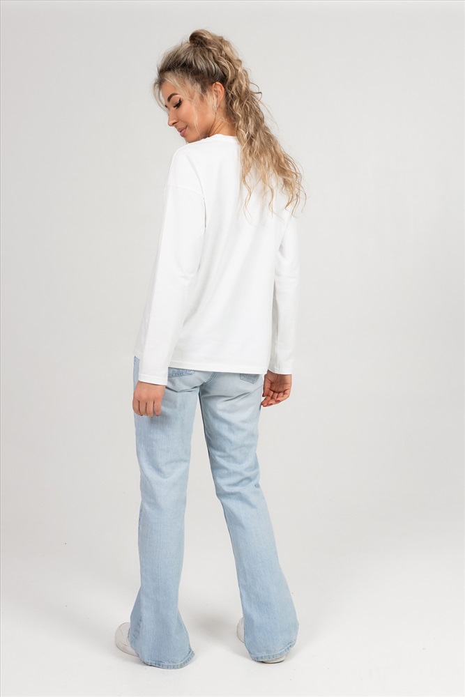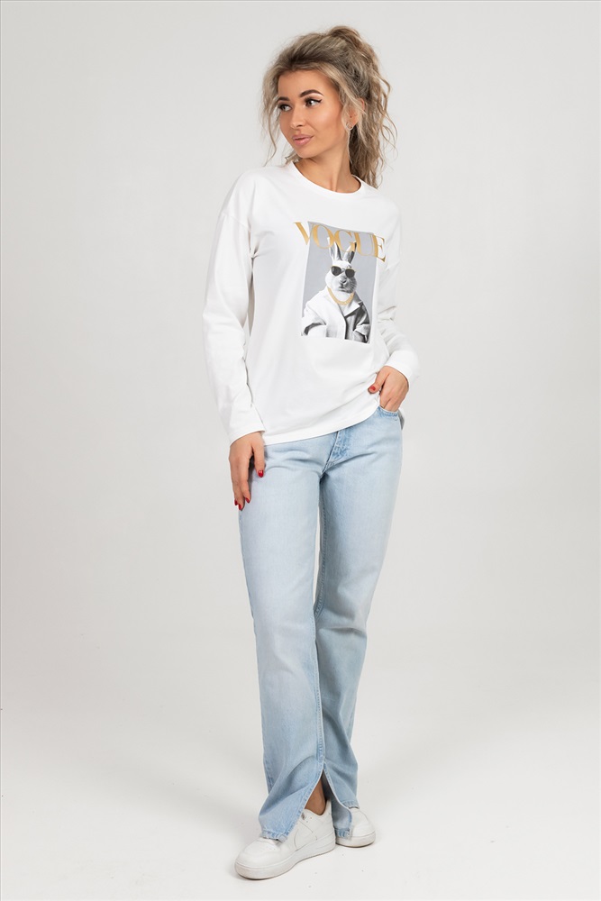 Застежка: без застежки Лонгслив с прямым кроем и свободным силуэтом, доходящий до линии бёдер.Плечи слегка приспущены, рукав длинный, втачной. Горловина имеет округлую форму и обтачку. На передней части расположен оригинальный принт.