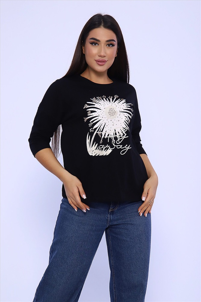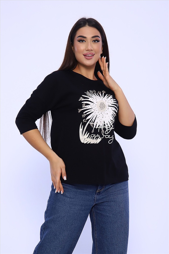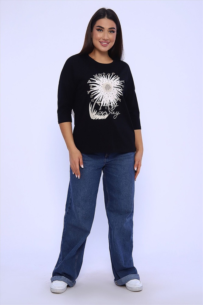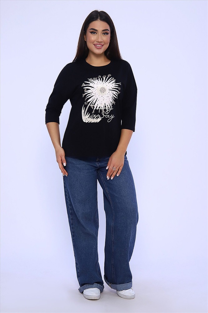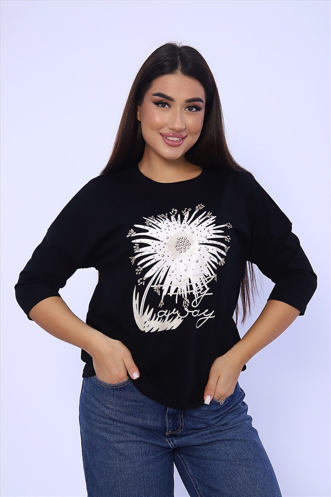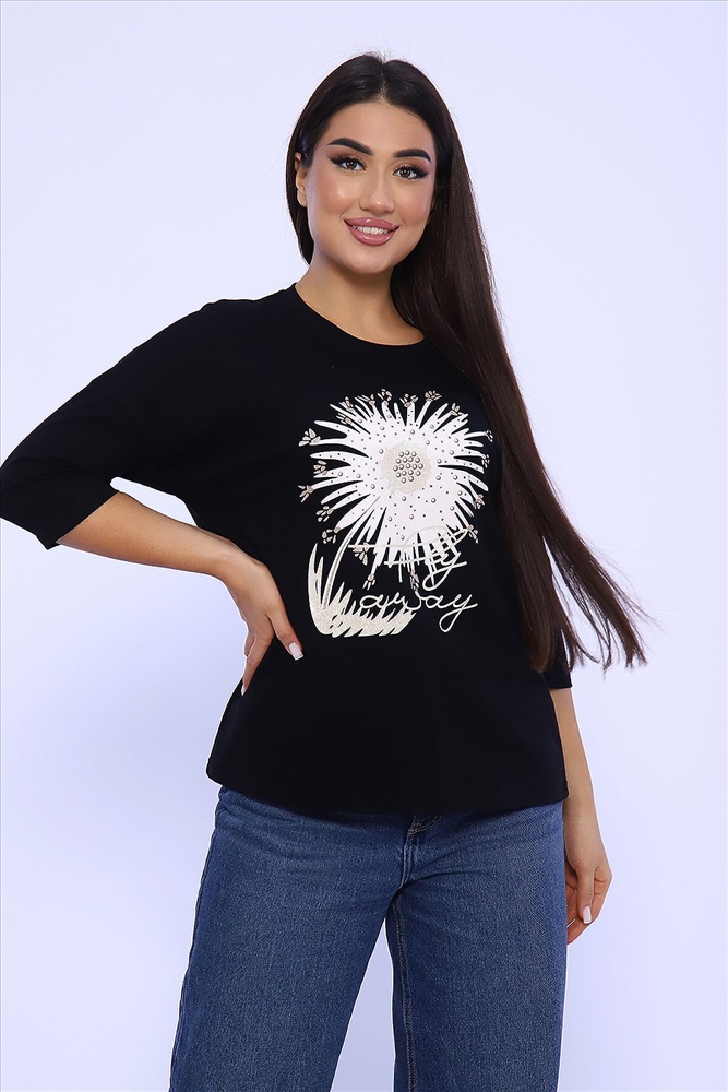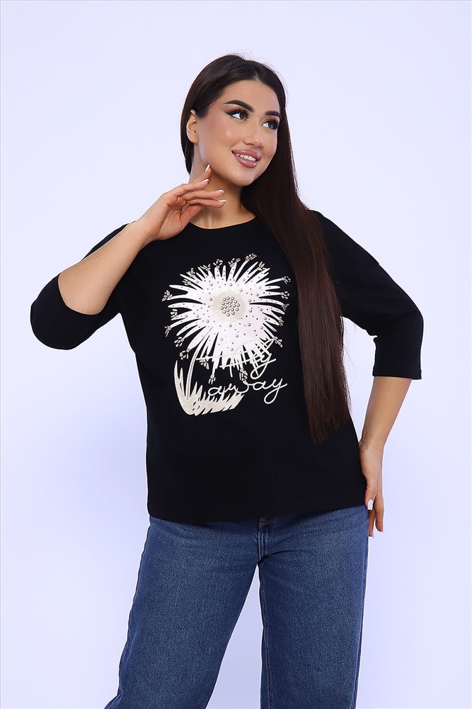 Страна производства: Россия Женский лонгслив - футболка с рукавом 3/4, изготовлена из гладкого трикотажного полотна с оригинальным принтом, разнообразит ваш ежедневный образ. Футболка будет хорошим дополнением к джинсам, брюкам. Рукав 3/4 очень актуален в любую погоду!