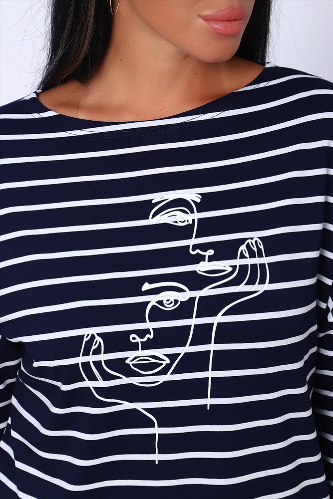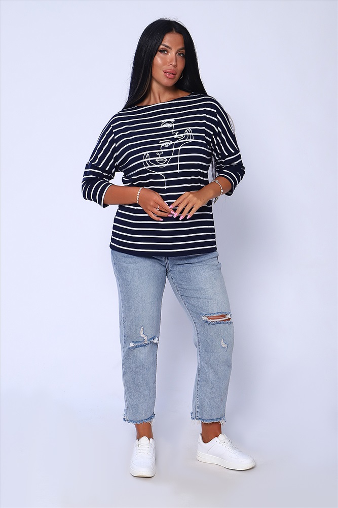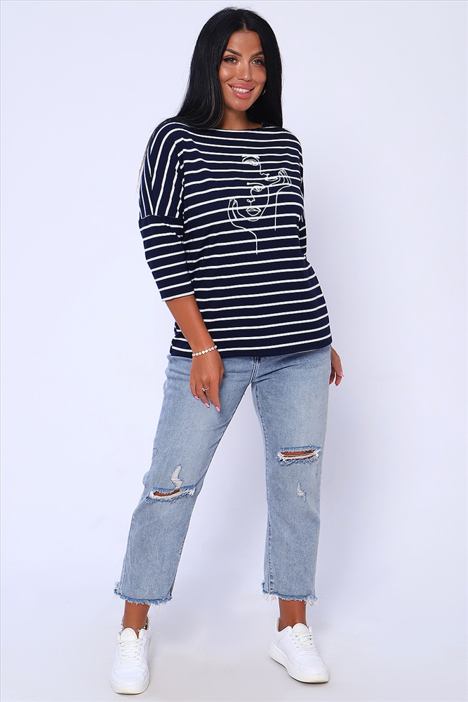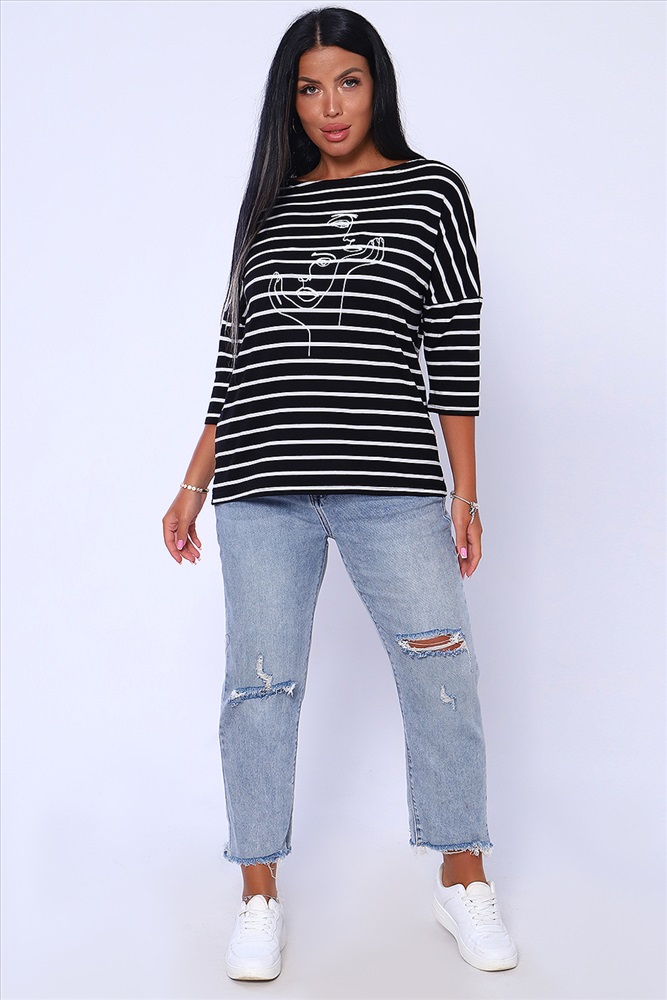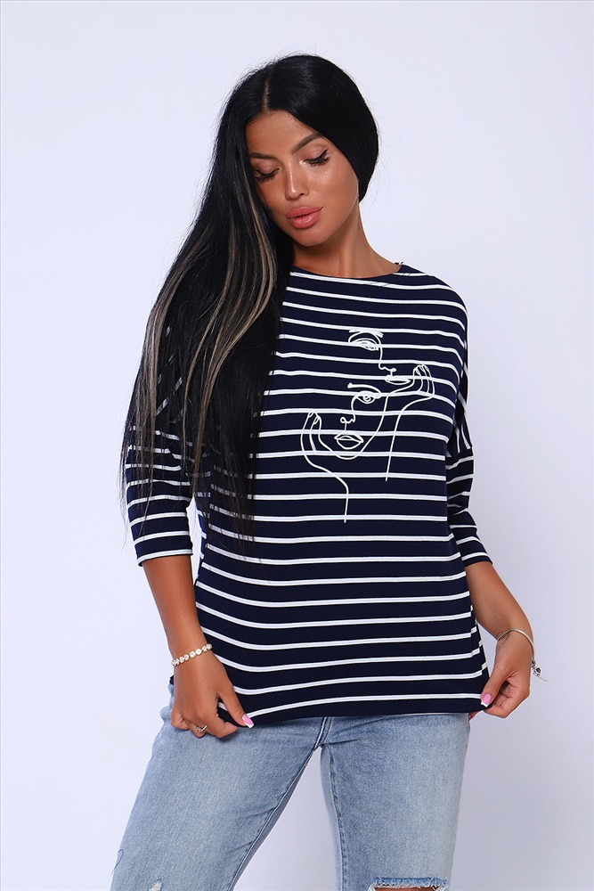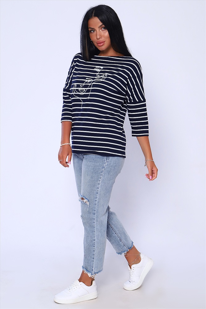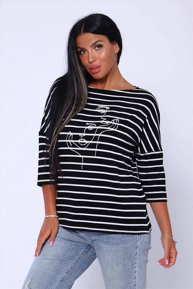 Застежка: без застежки Лонгслив с оригинальным принтом из нежной, приятой к телу вискозы в полоску. Горловина в виде лодочки, спущенная пройма, рукав 3/4. . Джемпер свободного кроя, универсальный, подойдёт на любую фигуру, скроет недостатки и подчеркнёт достоинства. Тонкая футболка с рукавом может стать как основой базового гардероба, так и акцентом в образе, отлично будет сочетаться с юбкой, брюками, джинсами. Используйте модный и стильный лонгслив, если хотите победить монотонность и обыденность будних дней, а также подчеркнуть ваш стиль и индивидуальность. Длина рукава в таблице измерений указана от начала горловины.