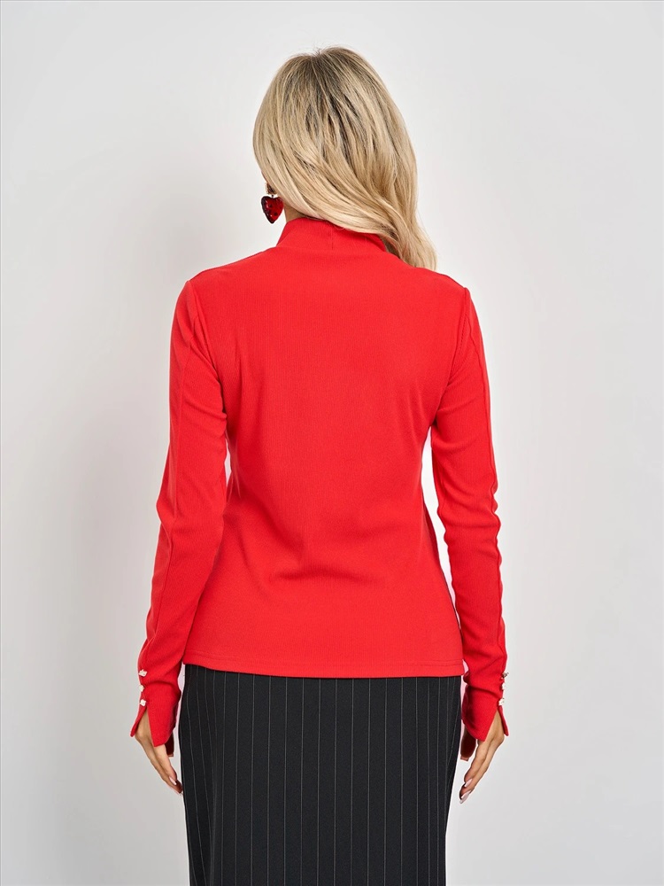 Воротник - стойка. Изделие из плотного трикотажа "лапша". Длинные втачные рукава с небольшими разрезами по краям, декорированы пуговицами. Комментарии к товару