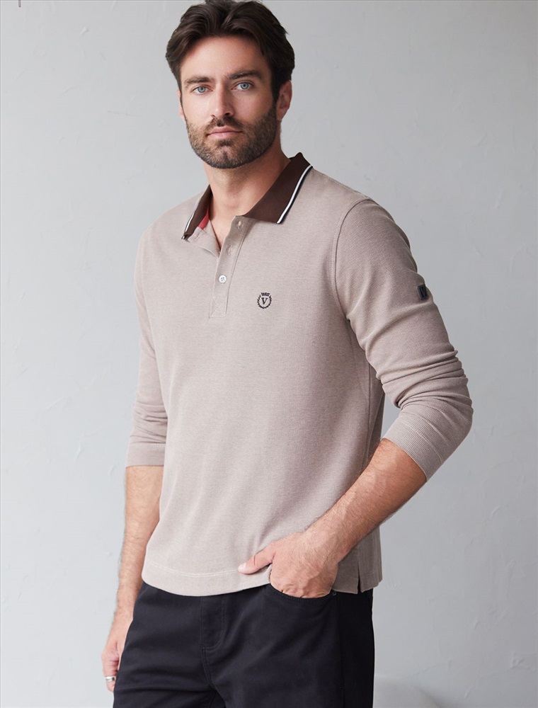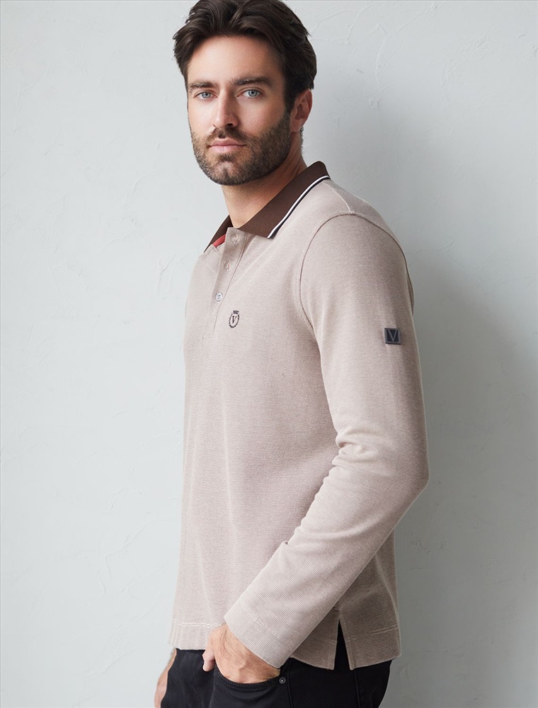 Плотность: 170 Г/м2 Стильный лонгслив коричневого цвета с плетеным воротником поло с застежкой на пуговицы выполнен из премиального хлопка в сочетании с эластаном .Невероятно мягкая ткань из натуральных волокон - она едва ощутима на коже и словно обнимает тело. Материал при касании кажется бархатистым, при движении он словно повторяет все мельчайшие линии фигуры. По свойствам материал сочетает в себе практичность и нежность: отлично провускает воздух, сохраняя ощущение свежести в течение всего дня, при этом созраняет тепло в прохладную погоду.Идеально подходит для чувствительной кожи, не вызывает раздражения и дискомфорта. Удобный отложной воротник делает образ современным и стильным, а длинные рукава с манжетами защищают руки при ветреной погоде. Поло хорошо садится по фигуре благодаря добавлению эластичных волокон — такой вариант подходит для мужчин любого роста и размеров, не стесняет движений и создает ощущение свободы и легкости. Повседневный лонгслив дополнен ненавязчивой вышивкой на груди в виде логотипа бренда в тон основному цвету, которая придает образу индивидуальность, не перегружая его лишними акцентами. Лаконичная вышивка служит оригинальным декоративным элементом, гармонично вписываясь в общий минималистичный облик. Такой подход делает лонг универсальным решением для тех, кто ценит простоту и стремится подчеркнуть свой вкус через детали. На рукаве нашивка из эко-кожи с логотипом бренда, по бокам небольшие разрезы - дополняют современный дизайн лонгслива. Легкий джемпер идеально комбинируется как с классическими брюками, так и с джинсами или шортами — универсальность этой модели оценит каждый мужчина, предпочитающий удобную одежду для активного дня. Легкий и дышащий материал делает повседневный лонгслив практичным для ношения в переменчивую осеннюю погоду, когда температура еще не слишком низкая, но уже ощущается прохлада. Комментарии к товару