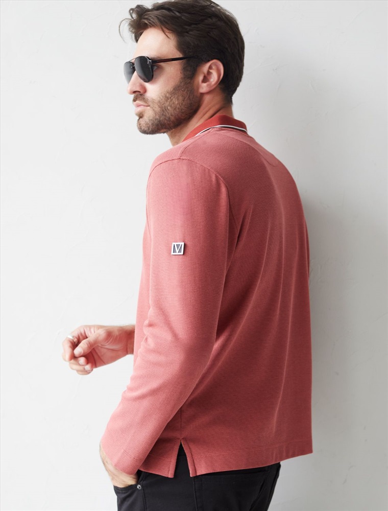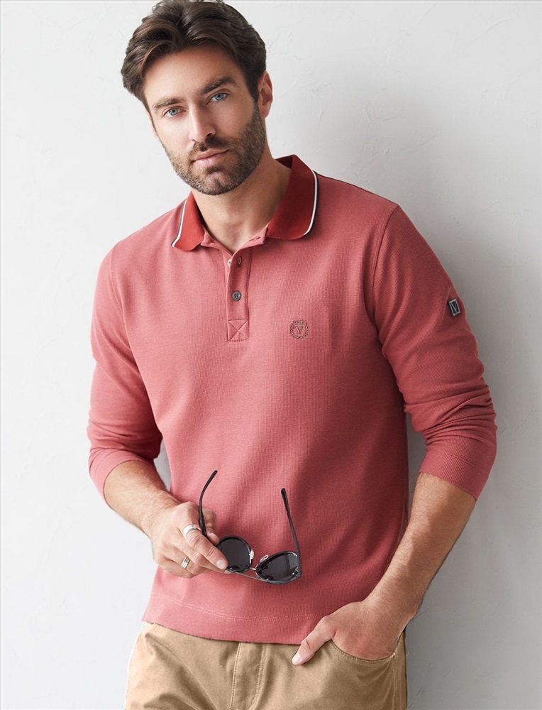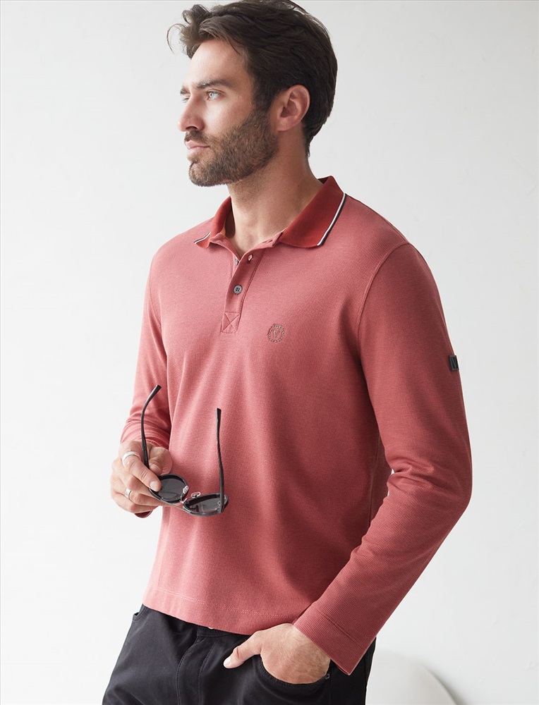 Плотность: 170 Г/м2 Стильный лонгслив кирпичного цвета с плетеным воротником поло с застежкой на пуговицы выполнен из премиального хлопка в сочетании с эластаном .Невероятно мягкая ткань из натуральных волокон - она едва ощутима на коже и словно обнимает тело. Материал при касании кажется бархатистым, при движении он словно повторяет все мельчайшие линии фигуры. По свойствам материал сочетает в себе практичность и нежность: отлично провускает воздух, сохраняя ощущение свежести в течение всего дня, при этом созраняет тепло в прохладную погоду.Идеально подходит для чувствительной кожи, не вызывает раздражения и дискомфорта. Удобный отложной воротник делает образ современным и стильным, а длинные рукава с манжетами защищают руки при ветреной погоде. Поло хорошо садится по фигуре благодаря добавлению эластичных волокон — такой вариант подходит для мужчин любого роста и размеров, не стесняет движений и создает ощущение свободы и легкости. Повседневный лонгслив дополнен ненавязчивой вышивкой на груди в виде логотипа бренда в тон основному цвету, которая придает образу индивидуальность, не перегружая его лишними акцентами. Лаконичная вышивка служит оригинальным декоративным элементом, гармонично вписываясь в общий минималистичный облик. Такой подход делает лонг универсальным решением для тех, кто ценит простоту и стремится подчеркнуть свой вкус через детали. На рукаве нашивка из эко-кожи с логотипом бренда, по бокам небольшие разрезы - дополняют современный дизайн лонгслива. Легкий джемпер идеально комбинируется как с классическими брюками, так и с джинсами или шортами — универсальность этой модели оценит каждый мужчина, предпочитающий удобную одежду для активного дня. Легкий и дышащий материал делает повседневный лонгслив практичным для ношения в переменчивую осеннюю погоду, когда температура еще не слишком низкая, но уже ощущается прохлада. Комментарии к товару
