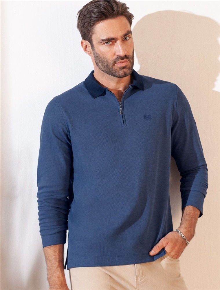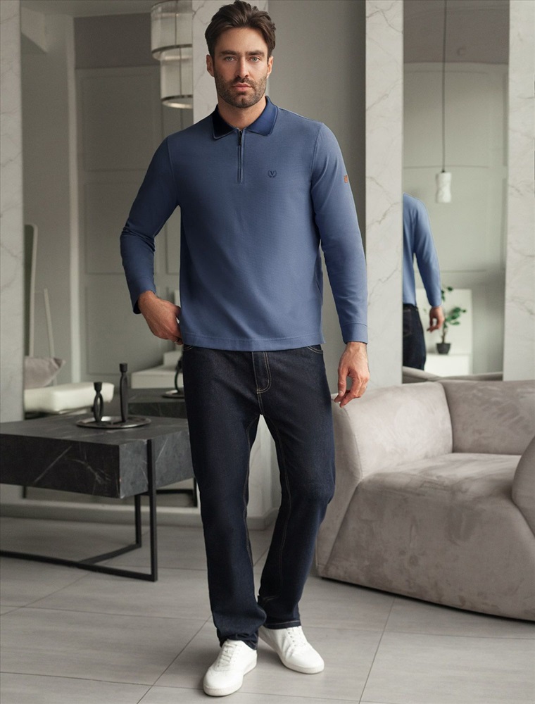 Плотность: 170 Г/м2 Стильный лонгслив светло-синего цвета с плетеным воротником поло с застежкой на молнию выполнен из премиального хлопка в сочетании с эластаном .Невероятно мягкая ткань из натуральных волокон - она едва ощутима на коже и словно обнимает тело. Материал при касании кажется бархатистым, при движении он словно повторяет все мельчайшие линии фигуры. По свойствам материал сочетает в себе практичность и нежность: отлично провускает воздух, сохраняя ощущение свежести в течение всего дня, при этом созраняет тепло в прохладную погоду.Идеально подходит для чувствительной кожи, не вызывает раздражения и дискомфорта. Удобный отложной воротник делает образ современным и стильным, а длинные рукава с манжетами защищают руки при ветреной погоде. Поло хорошо садится по фигуре благодаря добавлению эластичных волокон — такой вариант подходит для мужчин любого роста и размеров, не стесняет движений и создает ощущение свободы и легкости. Лонгслив с молнией дополнен ненавязчивой вышивкой на груди в виде логотипа бренда в тон основному цвету, которая придает образу индивидуальность, не перегружая его лишними акцентами. Лаконичная вышивка служит оригинальным декоративным элементом, гармонично вписываясь в общий минималистичный облик. Такой подход делает лонг универсальным решением для тех, кто ценит простоту и стремится подчеркнуть свой вкус через детали. На рукаве нашивка из эко-кожи с логотипом бренда, по бокам небольшие разрезы - дополняют современный дизайн лонгслива. Легкий джемпер идеально комбинируется как с классическими брюками, так и с джинсами или шортами — универсальность этой модели оценит каждый мужчина, предпочитающий удобную одежду для активного дня. Легкий и дышащий материал делает повседневный лонгслив практичным для ношения в переменчивую осеннюю погоду, когда температура еще не слишком низкая, но уже ощущается прохлада. Комментарии к товару