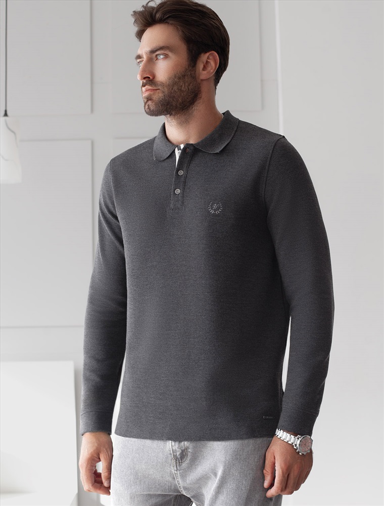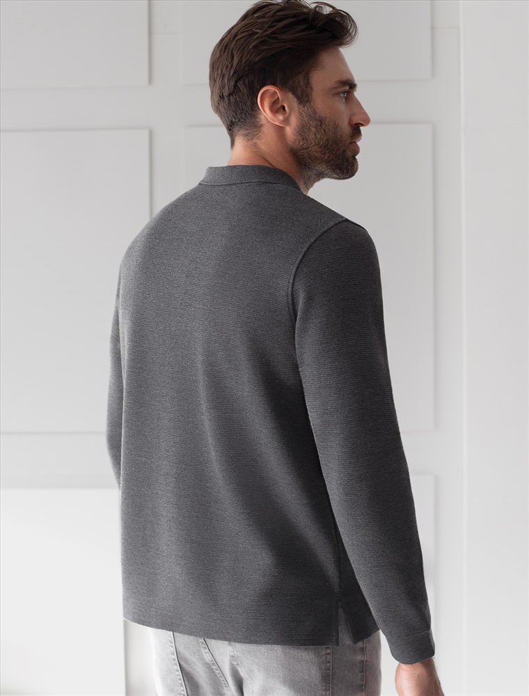 Плотность: 300 Г/м2 Стильный лонгслив темно-серого цвета с эффектом меланж с плетеным воротником поло с застежкой на металлические пуговицы выполнен из премиального хлопка в сочетании с эластаном . Невероятно мягкая ткань из натуральных волокон - она едва ощутима на коже и словно обнимает тело. Материал при касании кажется бархатистым, при движении он словно повторяет все мельчайшие линии фигуры. По свойствам материал сочетает в себе практичность и нежность: отлично проgускает воздух, сохраняя ощущение свежести в течение всего дня, при этом в нем тепло в прохладную погоду.Идеально подходит для чувствительной кожи, не вызывает раздражения и дискомфорта. Удобный отложной воротник с контрастной отделкой делает образ современным и стильным, а длинные рукава с манжетами защищают руки при ветреной погоде. Поло хорошо садится по фигуре благодаря добавлению эластичных волокон — такой вариант подходит для мужчин любого роста и размеров, не стесняет движений и создает ощущение свободы и легкости. Лонгслив с пуговицами дополнен ненавязчивой вышивкой на груди в виде логотипа бренда в тон основному цвету, которая придает образу индивидуальность, не перегружая его лишними акцентами. Лаконичная вышивка служит оригинальным декоративным элементом, гармонично вписываясь в общий минималистичный облик. Такой подход делает лонг универсальным решением для тех, кто ценит простоту и стремится подчеркнуть свой вкус через детали. Легкий джемпер идеально комбинируется как с классическими брюками, так и с джинсами или шортами — универсальность этой модели оценит каждый мужчина, предпочитающий удобную одежду для активного дня. Легкий и дышащий материал делает повседневный лонгслив практичным для ношения в переменчивую осеннюю погоду, когда температура еще не слишком низкая, но уже ощущается прохлада. Комментарии к товару