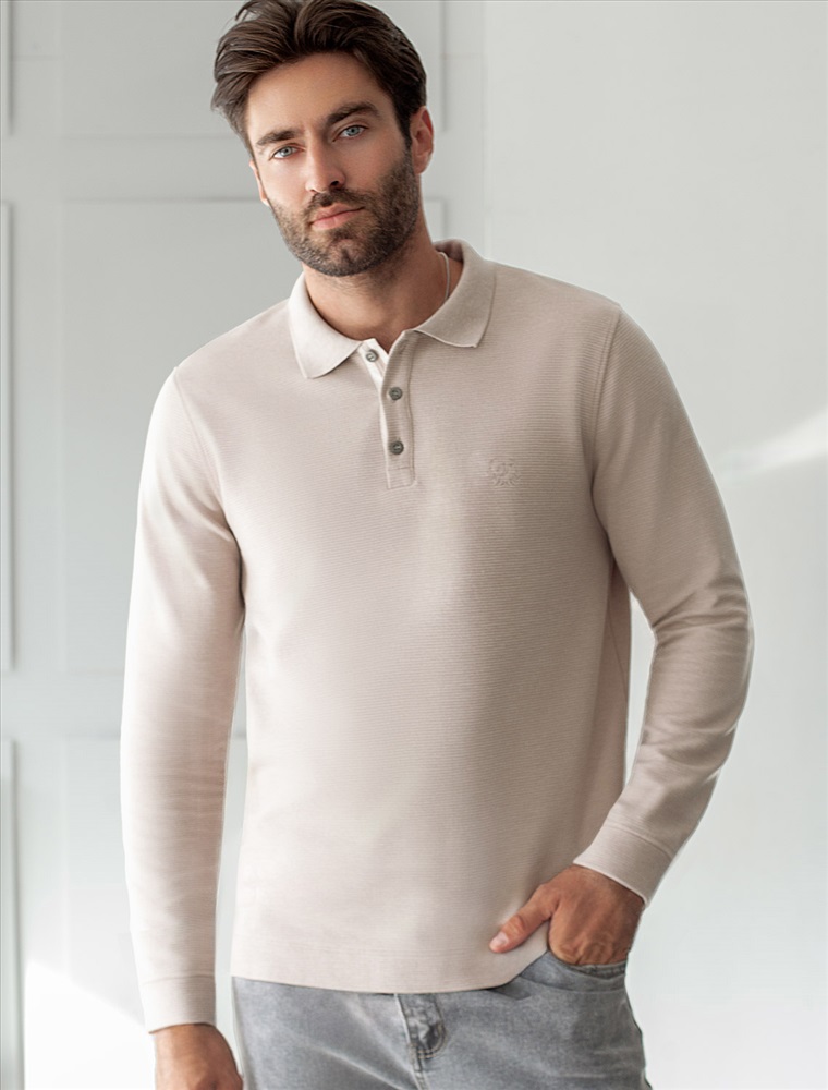 Плотность: 300 Г/м2 Стильный лонгслив светло-кофейного цвета с эффектом меланж с плетеным воротником поло с застежкой на металлические пуговицы выполнен из премиального хлопка в сочетании с эластаном .Невероятно мягкая ткань из натуральных волокон - она едва ощутима на коже и словно обнимает тело. Материал при касании кажется бархатистым, при движении он словно повторяет все мельчайшие линии фигуры. По свойствам материал сочетает в себе практичность и нежность: отлично пропускает воздух, сохраняя ощущение свежести в течение всего дня, при этом в нем тепло в прохладную погоду. Идеально подходит для чувствительной кожи, не вызывает раздражения и дискомфорта. Удобный отложной воротник с контрастной отделкой делает образ современным и стильным, а длинные рукава с манжетами защищают руки при ветреной погоде. Поло хорошо садится по фигуре благодаря добавлению эластичных волокон — такой вариант подходит для мужчин любого роста и размеров, не стесняет движений и создает ощущение свободы и легкости. Лонгслив с пуговицами дополнен ненавязчивой вышивкой на груди в виде логотипа бренда в тон основному цвету, которая придает образу индивидуальность, не перегружая его лишними акцентами. Лаконичная вышивка служит оригинальным декоративным элементом, гармонично вписываясь в общий минималистичный облик. Такой подход делает лонг универсальным решением для тех, кто ценит простоту и стремится подчеркнуть свой вкус через детали. Легкий джемпер идеально комбинируется как с классическими брюками, так и с джинсами или шортами — универсальность этой модели оценит каждый мужчина, предпочитающий удобную одежду для активного дня. Легкий и дышащий материал делает повседневный лонгслив практичным для ношения в переменчивую осеннюю погоду, когда температура еще не слишком низкая, но уже ощущается прохлада. Комментарии к товару