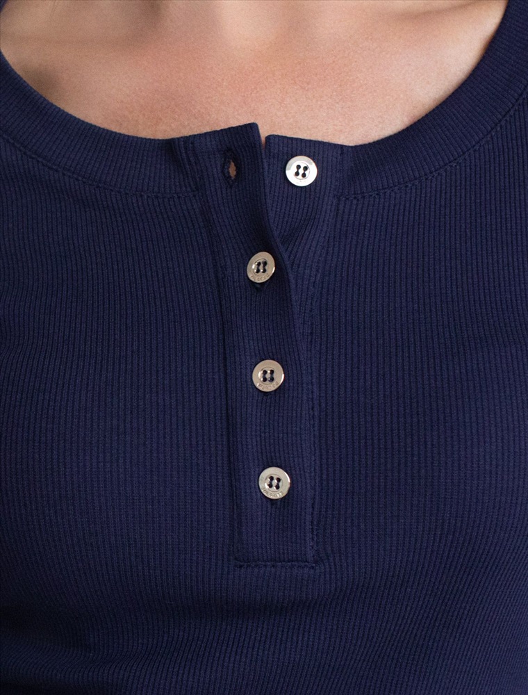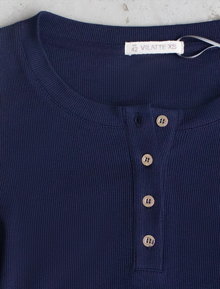 Лонгслив темно-синего цвета в мелкий рубчик облегающий с круглым вырезом на пуговицах — это удобный и стильный выбор для любого времени года. Благодаря продуманному дизайну и аккуратному круглому вырезу такой вариант лонгслива отлично смотрится и на работе, и в повседневной жизни. Трикотаж в мелкий рубчик делает тонкий джемпер особенно мягким и дарит комфорт. Натуральный хлопок в составе приятен телу, обеспечивает хорошую воздухопроницаемость и сохраняет теплоту. Облегает фигуру, подчеркивая достоинства силуэта, делая образ женственным. Материал отличается мягкой и эластичной структурой, благодаря чему лонгслив не сковывает движений и дарит ощущение свободы в течение дня. Лонг подходит на любую фигуру, не теряя привлекательного внешнего вида даже на большие размеры. Такой стильный лонгслив позволяет легко создавать повседневные и расслабленные образы.