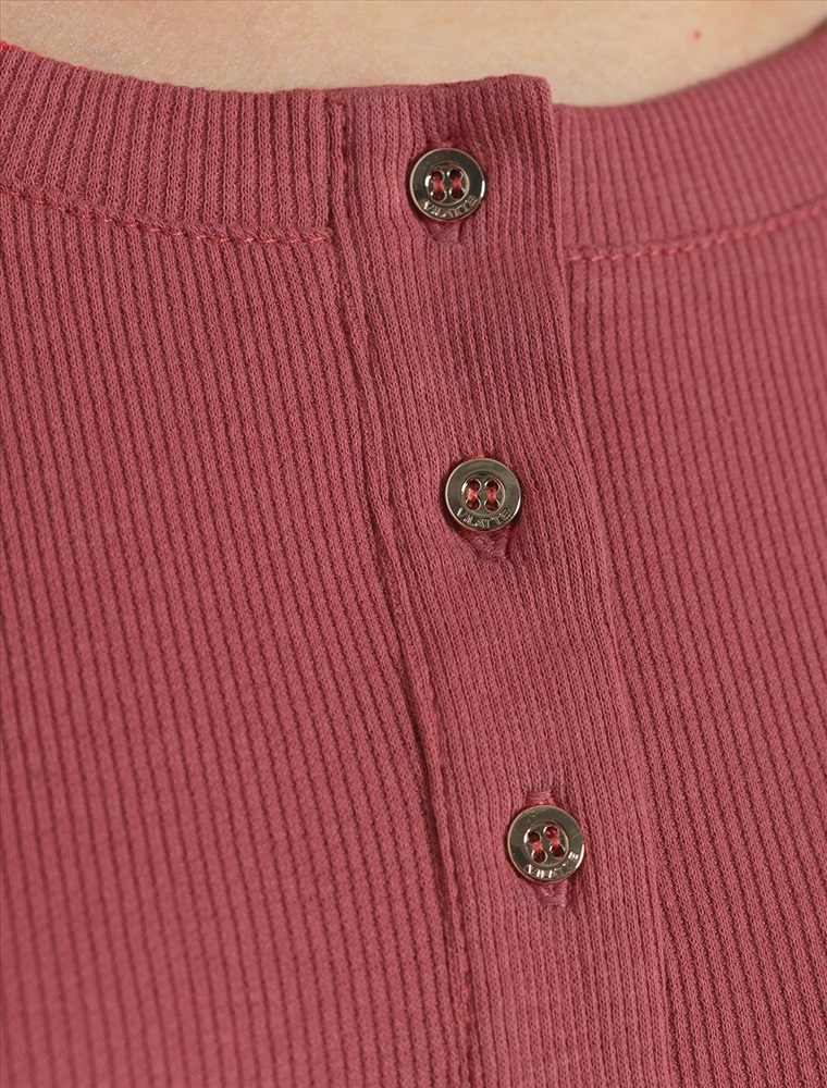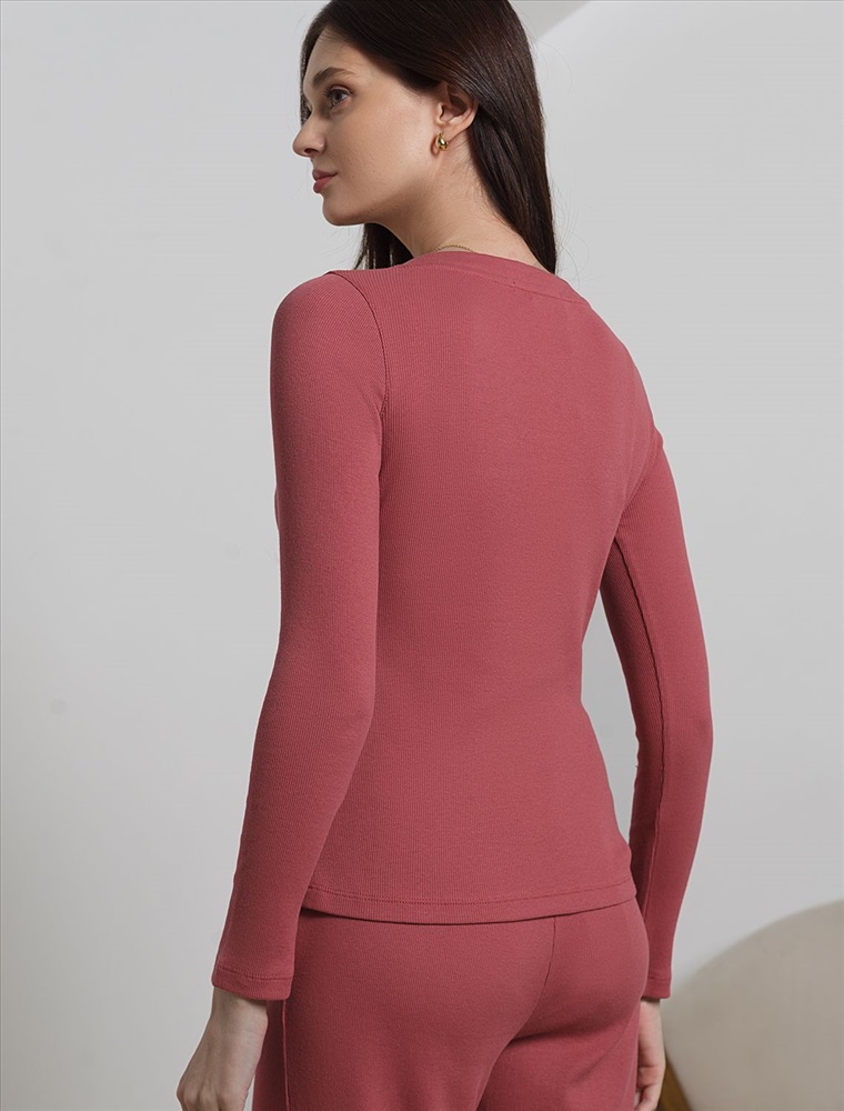 Лонгслив темно-кораллового цвета в мелкий рубчик облегающий с круглым вырезом на пуговицах — это удобный и стильный выбор для любого времени года. Благодаря продуманному дизайну и аккуратному круглому вырезу такой вариант лонгслива отлично смотрится и на работе, и в повседневной жизни. Трикотаж в мелкий рубчик делает тонкий джемпер особенно мягким и дарит комфорт. Натуральный хлопок в составе приятен телу, обеспечивает хорошую воздухопроницаемость и сохраняет теплоту. Облегает фигуру, подчеркивая достоинства силуэта, делая образ женственным. Материал отличается мягкой и эластичной структурой, благодаря чему лонгслив не сковывает движений и дарит ощущение свободы в течение дня. Лонг подходит на любую фигуру, не теряя привлекательного внешнего вида даже на большие размеры. Такой стильный лонгслив позволяет легко создавать повседневные и расслабленные образы.