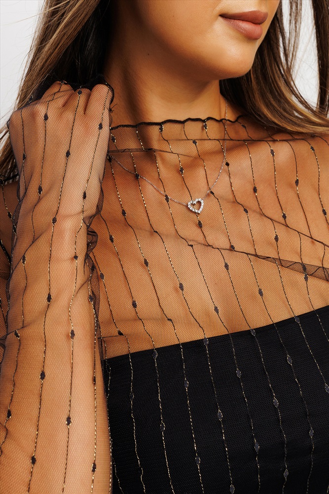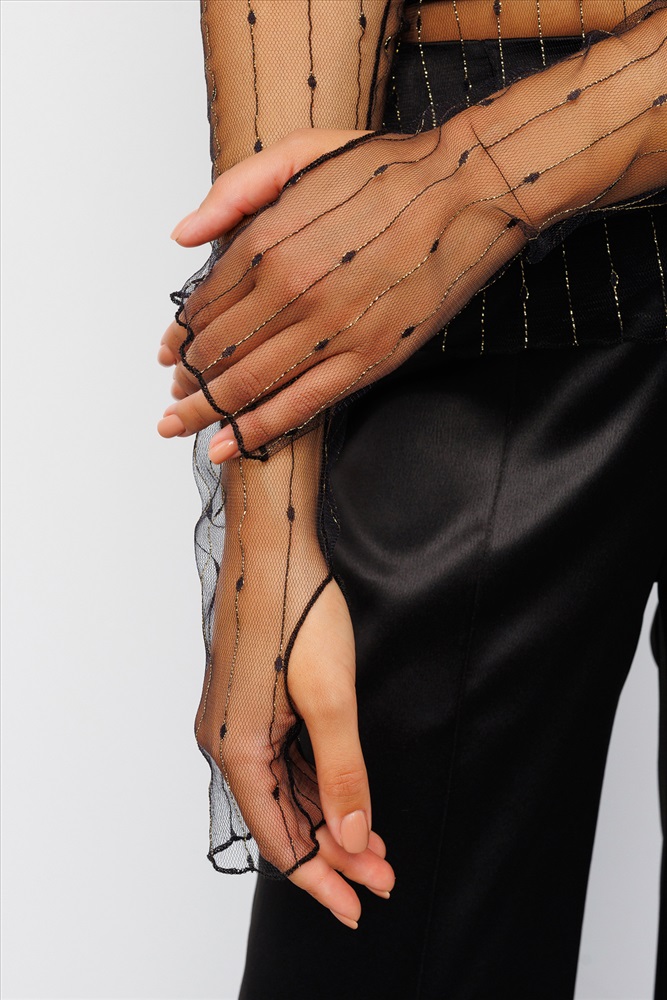 Состав: 100% п/э; 92% х/б; 8% лайкра Модель: Лонгслив сетка с топом 366BLK Тип товара: лонгслив Материал: сетка | трикотаж стрейч | сетка | трикотаж стрейч Бренд: Рапоза Длина: короткий Карман: без карманов Рейтинг: Рейтинг 4 и выше Рисунок: крапинка Рукав: длинный рукав Сезонность: лето | осень | весна | зима Силуэт: полуприлегающий Стиль: нарядный | повседневный Воротник: без воротника Застежка: без застежки Лонгслив сетка и топ бандо - идеальное сочетание комфорта и стиля, созданное специально для модных женщин, которые ценят неповторимость своего образа. Уникальный женский топ бандо станет незаменимым предметом гардероба, доступным и практичным решением для создания яркого и неповторимого образа. Красивый женский лонгслив не просто обычная блузка, а настоящая находка для тех, кому важно выглядеть стильно и модно. Эта кофта женская сделана из высококачественной сетки, которая прекрасно подчеркивает женскую красоту и изящество. Длинные рукава с вырезом под пальцы придают особый шарм и утонченность, а наличие люрекса и блесток добавляет неповторимости и блеска вашему образу. Блузка нарядная, идеально подходит для особых случаев, вечеринок и торжественных мероприятий. Ее элегантный дизайн и прекрасные отделочные элементы делают эту кофточку женскую невероятно воздушной и невесомой. Вы будете притягивать восхищенные взгляды своим образом. Блестящий топ идеально сочетается с любыми брюками, юбками или джинсами. Он дополнит ваш образ и добавит ему изюминку. Вы сможете создать необыкновенные ансамбли и быть в центре внимания. Блузка вечерняя подарит вам возможность проявить свою индивидуальность и выразить свой уникальный стиль. Для тех кто ценит качество и комфорт, этот топ станет настоящим открытием. Мягкая и приятная на ощупь ткань позволит вам чувствовать себя комфортно в течение всего дня. Вы сможете наслаждаться каждым моментом, не ограничивая себя в движении. Топ изготовлен из плотной ткани, которая обеспечивает особую поддержку и плотно облегает тело. Ткань: Сетка-фатин / трикотажное полотно с лайкрой. Состав: 100% п/э / 92% х/б+ 8% лайкра. Таблица размеров и весакофта