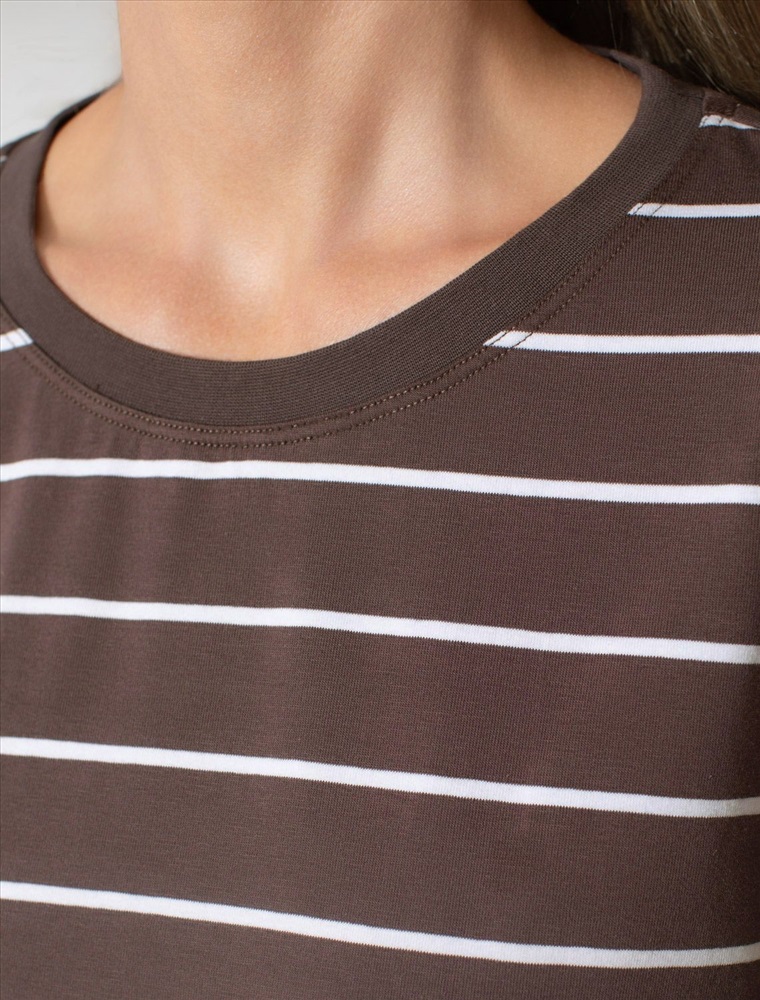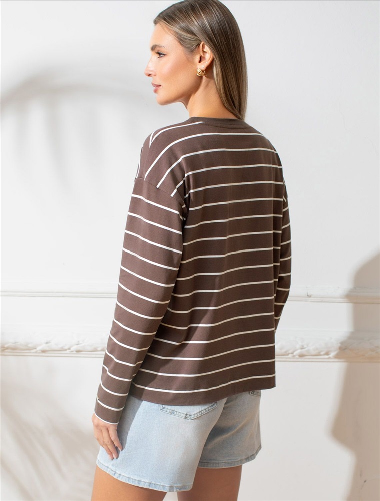 Плотность: 170 Г/м2 Свободный лонгслив кофейного цвета в белую полоску с длинным рукавом выполнен из премиального хлопка с добавлением эластана, плотностью 170 Г/м2, что обеспечивает комфорт и приятные тактильные ощущения. Полоска - придает изделию легкую текстурность и стильный вид, а круглый ворот создает универсальный образ, который подойдет для повседневного использования. Такой лонгслив идеально подходит для весеннего и летнего сезона благодаря легкой и дышащей ткани. Представленная широкая размерная линейка позволяет выбрать оптимальный вариант на любую фигуру, в том числе на плюс-сайз, обеспечивая свободу движений и удобство на каждый день. Этот комфортный лонгслив станет отличной базой в гардеробе, сочетаясь с различными стилями одежды и создавая простой, но эффектный образ. Комментарии к товару
