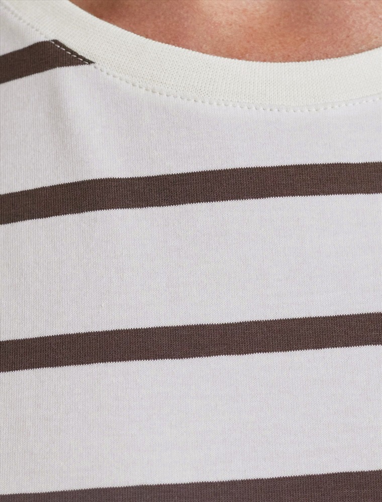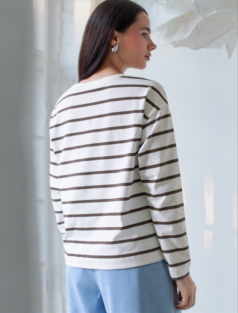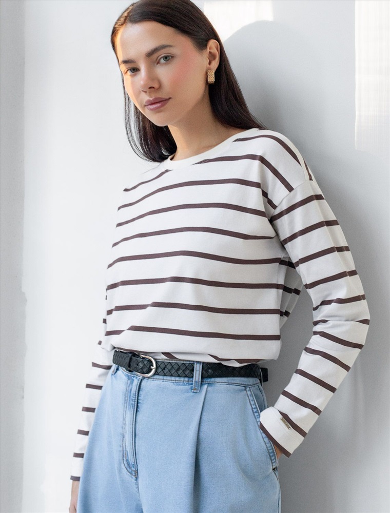 Плотность: 170 Г/м2 Свободный лонгслив белого цвета в кофейную полоску с длинным рукавом выполнен из премиального хлопка с добавлением эластана, плотностью 170 Г/м2, что обеспечивает комфорт и приятные тактильные ощущения. Полоска - придает изделию легкую текстурность и стильный вид, а круглый ворот создает универсальный образ, который подойдет для повседневного использования. Такой лонгслив идеально подходит для весеннего и летнего сезона благодаря легкой и дышащей ткани. Представленная широкая размерная линейка позволяет выбрать оптимальный вариант на любую фигуру, в том числе на плюс-сайз, обеспечивая свободу движений и удобство на каждый день. Этот комфортный лонгслив станет отличной базой в гардеробе, сочетаясь с различными стилями одежды и создавая простой, но эффектный образ.