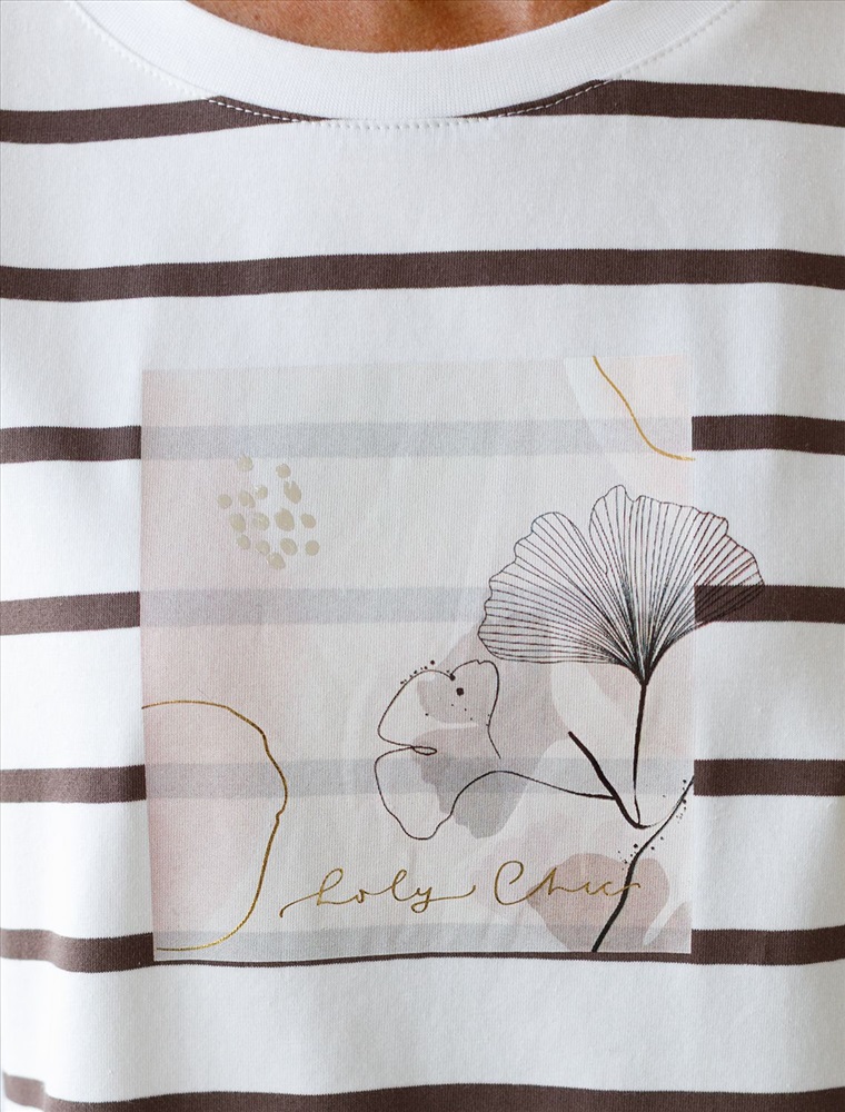 Плотность: 170 Г/м2 Свободный лонгслив белого цвета в кофейную полоску с длинным рукавом выполнен из премиального хлопка с добавлением эластана, плотностью 170 Г/м2, что обеспечивает комфорт и приятные тактильные ощущения. Полоска - придает изделию легкую текстурность, принт в виде цветка, который нанесен красками с устойчивым покрытием, добавляет стиля и индивидуальности, а круглый ворот создает универсальный образ, который подойдет для повседневного использования. Такой лонгслив идеально подходит для весеннего и летнего сезона благодаря легкой и дышащей ткани. Представленная широкая размерная линейка позволяет выбрать оптимальный вариант на любую фигуру, в том числе на плюс-сайз, обеспечивая свободу движений и удобство на каждый день. Этот комфортный лонгслив станет отличной базой в гардеробе, сочетаясь с различными стилями одежды и создавая простой, но эффектный образ. Комментарии к товару