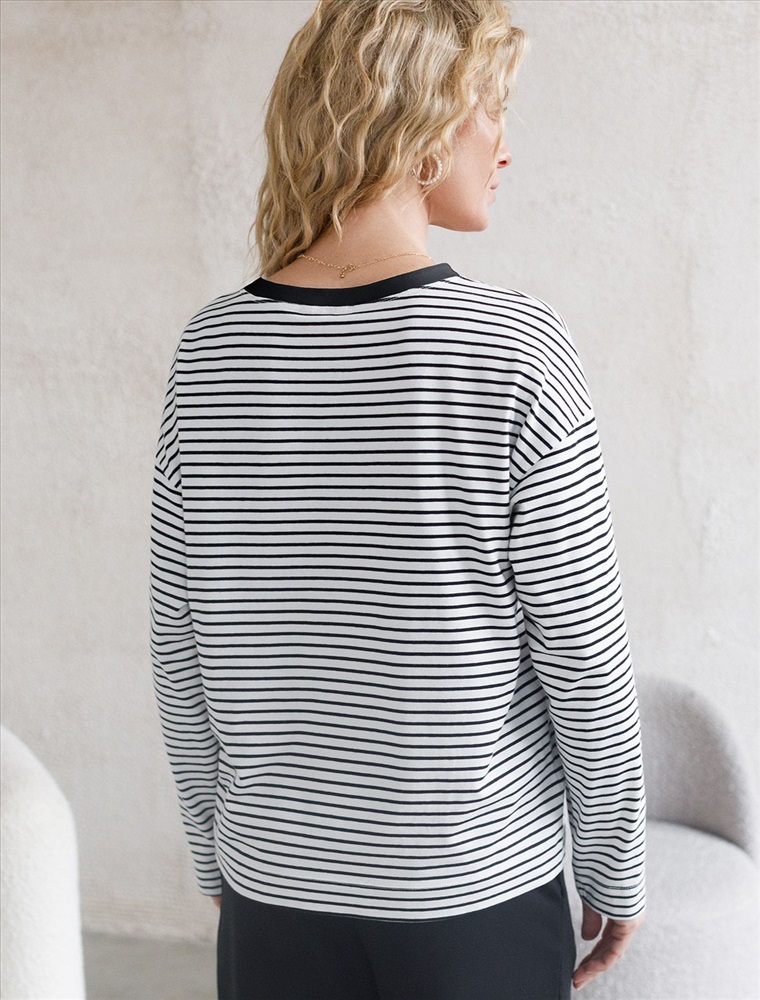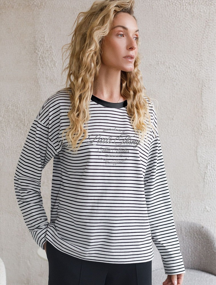 Плотность: 170 Г/м2 Свободный лонгслив белого цвета в черную полоску с длинным рукавом выполнен из премиального хлопка с добавлением эластана, плотностью 170 Г/м2, что обеспечивает комфорт и приятные тактильные ощущения. Полоска - придает изделию легкую текстурность, принт в виде надписи, который нанесен красками с устойчивым покрытием, добавляет стиля и индивидуальности. Перевод надписи: It is a litlle thing called attitude that makes a big difference - Это такая мелочь, как отношение, которое имеет большое значение. Круглый ворот создает универсальный образ, который подойдет для повседневного использования. Такой лонгслив идеально подходит для весеннего и летнего сезона благодаря легкой и дышащей ткани. Представленная широкая размерная линейка позволяет выбрать оптимальный вариант на любую фигуру, в том числе на плюс-сайз, обеспечивая свободу движений и удобство на каждый день. Этот комфортный лонгслив станет отличной базой в гардеробе, сочетаясь с различными стилями одежды и создавая простой, но эффектный образ. Комментарии к товару