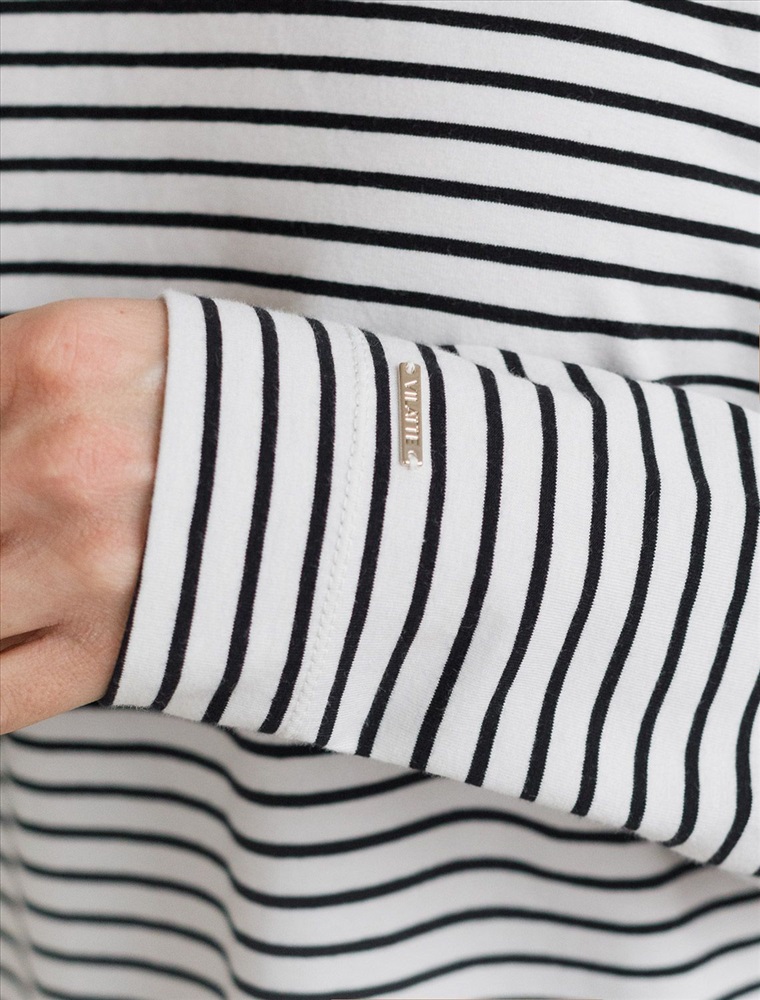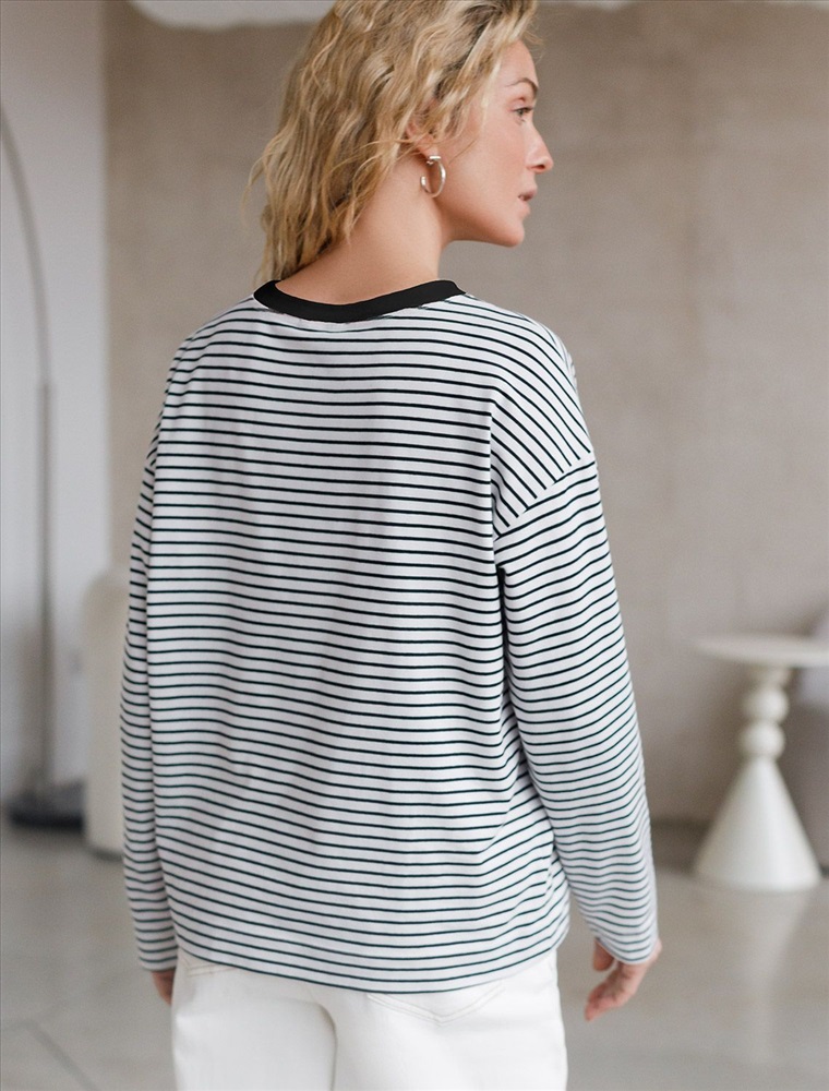 Свободный лонгслив в черно-белую полоску с длинным рукавом выполнен из премиального хлопка с добавлением эластана, плотностью 170 Г/м2, что обеспечивает комфорт и приятные тактильные ощущения. Полоска - придает изделию легкую текстурность, принт в виде цветка, который нанесен красками с устойчивым покрытием, добавляет стиля и индивидуальности, а круглый ворот создает универсальный образ, который подойдет для повседневного использования. Такой лонгслив идеально подходит для весеннего и летнего сезона благодаря легкой и дышащей ткани. Представленная широкая размерная линейка позволяет выбрать оптимальный вариант на любую фигуру, в том числе на плюс-сайз, обеспечивая свободу движений и удобство на каждый день. Этот комфортный лонгслив станет отличной базой в гардеробе, сочетаясь с различными стилями одежды и создавая простой, но эффектный образ.