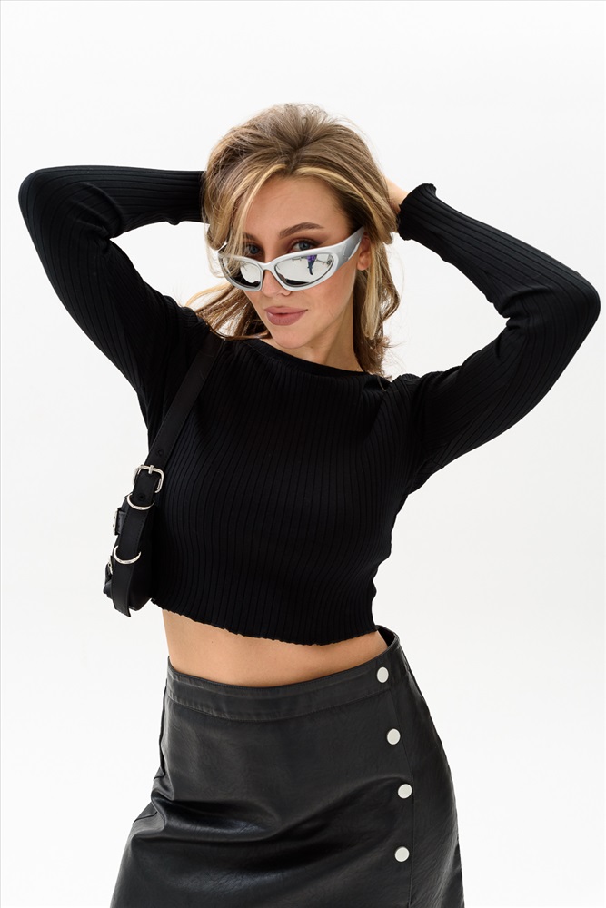 Застежка: без застежки Стильный кроп-топ с длинным рукавом, имеющий фактуру в рубчик - это женский супер хит сезона! Необычный, короткий топик прилегающего кроя выполнен из мягкой, приятной к телу трикотажной ткани лапша. Молодежная модель топа прекрасно впишется в гардероб и поможет создать множество стильных образов. Топ сочетается с одеждой в спортивном, офисном и праздничном стилях. Модный кроп-топ носите с юбкой, джинсами, спортивными брюками. Ткань обладает хорошей растяжимостью.