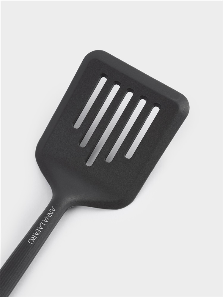 Лоратка с прорезями. Размер: 32х8,5 см. Материал: силикон, нейлон. Предназначена для переворачивания, деления на порции и подачи на стол мягких блюд, для подъема и переворачивания мяса при жарке на решетке. Рекомендации по уходу: мыть вручную с применением мягких моющих средств. Не использовать для ухода абразивные чистящие средства и жесткие губки. Можно мыть в посудомоечной машине.