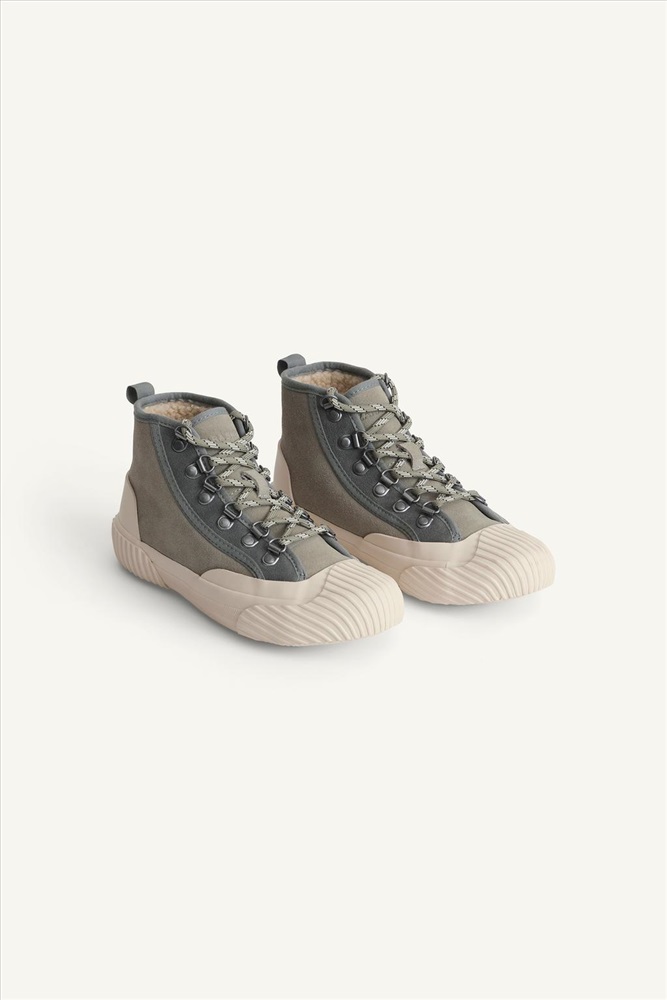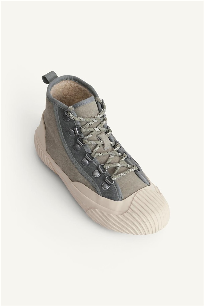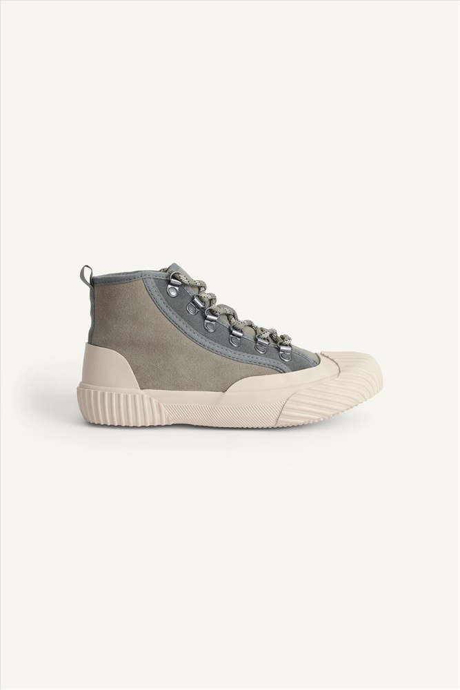 Cowhide leather high-top sneakers. Adjustable lace-up fastening. Back pull tab for slipping on with ease. Flexible insole. Reinforced rubber toecap. Contrast rubber sole. COMPOSITION, CARE & ORIGIN COMPOSITION UPPER 87% cow leather LINING 100% polyester SOLE 100% rubber INSOLE 100% polyester TONGUE 100% cow leather