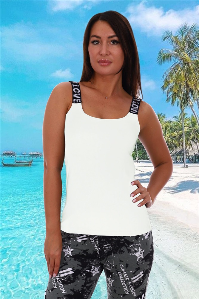 ID товара: 276322 Состав: Вискоза 92%, Лайкра 8% Сезон: Весна/Лето Длина: Средняя Фасон: Прямой Рукав: Без рукава Вырез горловины: Круглый Основная ткань: Вискоза | Вискоза, Вискоза — материал, произведенный искусственным путем из натурального сырья (древесины). В зависимости от способа обработки может быть похожа на хлопок, лен, шелк или шерсть. Изготавливается глянцевой или матовой, фактурной или ровной, тяжелой или невесомой. От того, добавлен ли при производстве эластан, зависит, тянется или нет материя. Особенности- хорошо окрашивается, гигроскопична, довольно высокая степень прочности (в сухом виде). Стиль: Повседневный Страна бренда: Россия Страна производства: Россия Майка прилегающего силуэта, средней длины, с округлой горловиной. Бретели выполнены из эластичной тесьмы с надписями. Горловина и проймы обработаны бейкой из основного полотна. Комментарии к товару