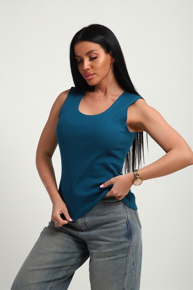 Застежка: без застежки Трендовый топ, сшит из приятной к телу ткани. Материал кашкорсе с фактурой в рубчик, хорошо тянется и очень комфортна в носке. Эстетичная модель с круглым вырезом имеет качественный пошив и отлично держит форму.