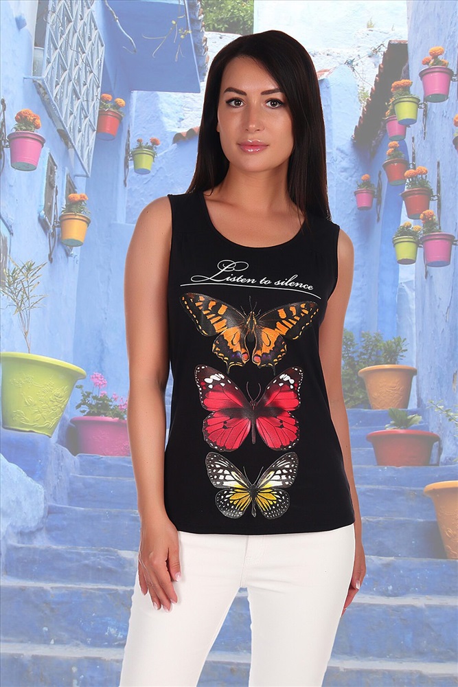ID товара: 274914 Состав: Хлопок 100% Сезон: Весна/Лето Длина: Средняя Фасон: Полуприлегающий Рукав: Без рукава Вид застежки: Нет Вырез горловины: Круглый Рисунок: бабочки Тип карманов: Без карманов Декоративные элементы: Печатный принт Основная ткань: Хлопок | Кулирка, Кулирка — это самое тонкое и гладкое трикотажное полотно, изготовленное из чистого хлопка. Полотно имеет характерную структуру- с лицевой стороны плоские «косички», с изнаночной – «кирпичная кладка». Особенности- гигроскопична, воздухопроницаема, при стирке, сушке и глажке не садится, хорошо держит форму, не образует складки. Стиль: Повседневный Страна бренда: Россия Страна производства: Россия Майка женская с красивым принтом "бабочки" и с перепадом длины. Комментарии к товару