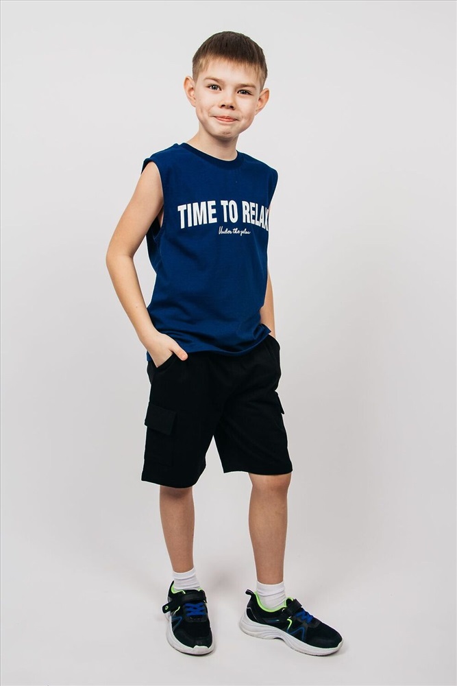 Страна производства: Россия Майка для мальчика выполнена из 100% хлопка. Майка прямого силуэта. Благодаря эластичной горловине, выполненной из рибаны. майку удобно снимать и надевать. Пройма внутри обрабатывается бейкой из основного полотна. На полочке принт шелкография. Надпись переводится как Время отдыхать под пальмой. Материал не растягивается и не деформируется.