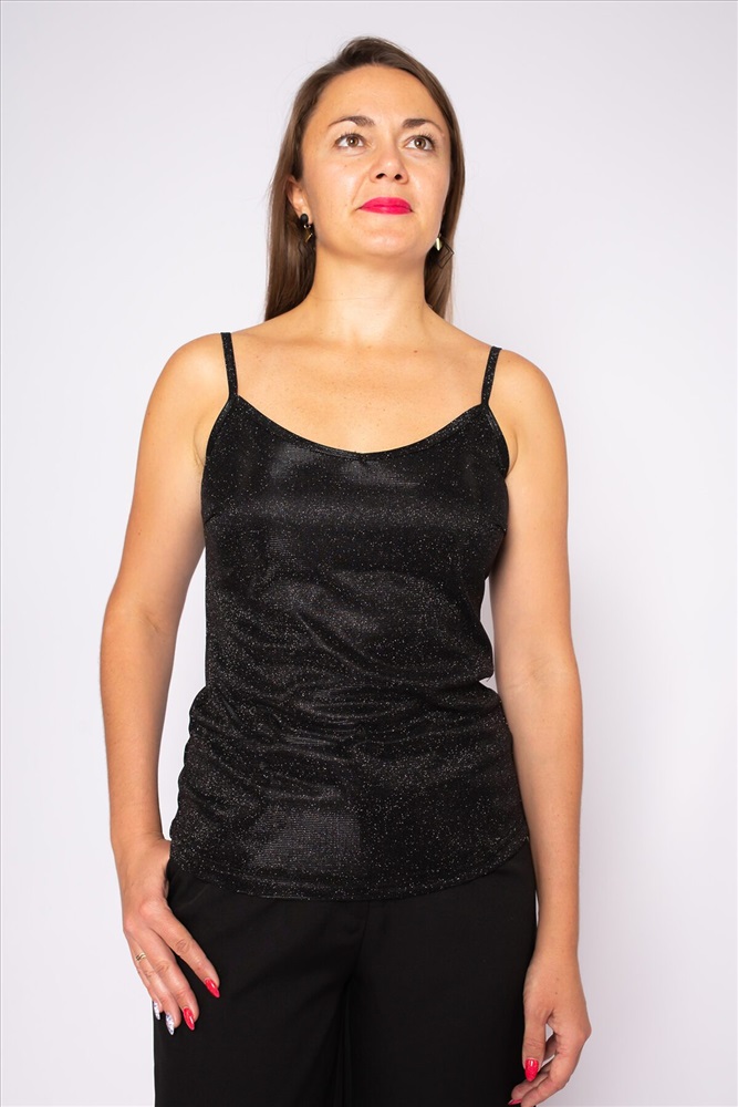 ID товара: 939829 Состав: 92% Полиэстер, 8% Эластан Сезон: Весна/Лето Длина: Средняя Фасон: Прямой Рукав: без рукавов Вырез горловины: На бретельках Основная ткань: Полиэстер Стиль: Повседневный Вид ткани: Полиэстер Страна бренда: Россия Страна производства: Россия Майка полуприлегающего силуэта на бретелях, длиной до бедер. На переде нагрудные вытачки и V-образный вырез. Красивый сверкающий блестящий эффект как от вещи со стразами. Эта стильная новинка поможет создать вам яркий и удобный образ. Приталенная и удобная посадка смотрится на фигуре любого типа. Топ кроп женский с глиттером для тех, кто готов выступить в деловом в повседневный и праздничном луке. Оригинальная вязка базовой майки с акцентными линиями выглядит эффектно и подчеркнёт грудь и фигуру. Длина позволяет носить его как на выпуск, так и заправляя в брюки, юбку, шорты и джинсы. Комментарии к товару