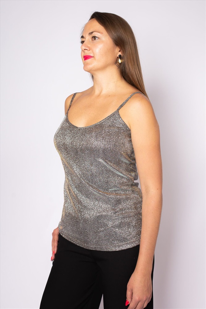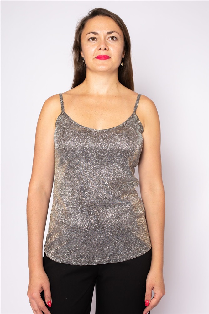 ID товара: 939830 Состав: 92% Полиэстер, 8% Эластан Сезон: Весна/Лето Длина: Средняя Фасон: Прямой Рукав: без рукавов Вырез горловины: На бретельках Основная ткань: Полиэстер Вид ткани: Полиэстер Страна бренда: Россия Страна производства: Россия Майка полуприлегающего силуэта на бретелях, длиной до бедер. На переде нагрудные вытачки и V-образный вырез. Красивый сверкающий блестящий эффект как от вещи со стразами. Эта стильная новинка поможет создать вам яркий и удобный образ. Приталенная и удобная посадка смотрится на фигуре любого типа. Топ кроп женский с глиттером для тех, кто готов выступить в деловом в повседневный и праздничном луке. Оригинальная вязка базовой майки с акцентными линиями выглядит эффектно и подчеркнёт грудь и фигуру. Длина позволяет носить его как на выпуск, так и заправляя в брюки, юбку, шорты и джинсы. Комментарии к товару
