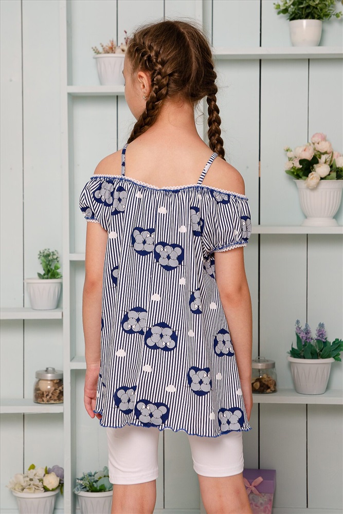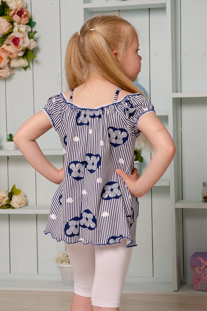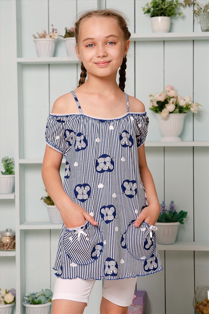 ID товара: 784331 Состав: Хлопок 100% Сезон: Весна/Лето Длина: Удлиненная Фасон: Свободный крой Рукав: Короткие Вырез горловины: На бретельках Рисунок: Полоски Тип карманов: Накладные Основная ткань: Хлопок | Кулирка Стиль: Повседневный Страна бренда: Россия Страна производства: Россия Майка детская летняя. Свободного А-силуэта на тонких бретелях. С двумя декоративными кармашками, на которых настрочены бантики из атласной ленты. Горловина и рукава собраны на кружевную резинку. Все срезы в изделии обработаны декоративной краеобметочной строчкой. Комментарии к товару