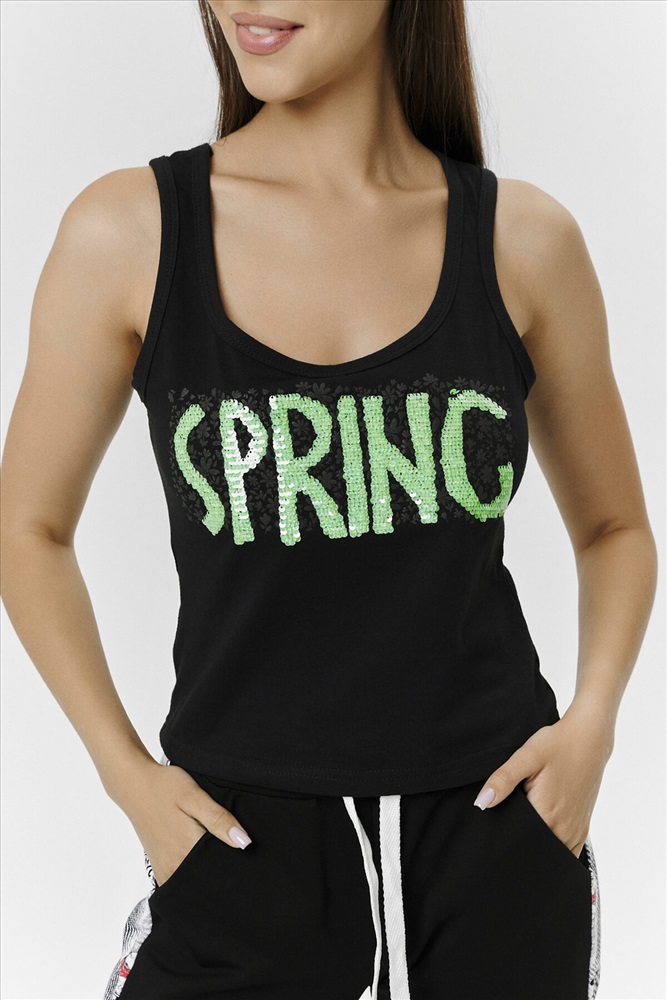 ID товара: 792175 Состав: Хлопок 95%, Лайкра 5% Сезон: Весна/Лето Длина: Средняя Фасон: Полуприлегающий Рукав: Без рукавов Вырез горловины: Округлый Рисунок: Надпись Декоративные элементы: Паты Основная ткань: Хлопок | Кулирка с лайкрой Стиль: Повседневный Страна бренда: Россия Страна производства: Россия Майка женская полуприлегающего силуэта, оформлена ярким принтом и пайетками. Комментарии к товару