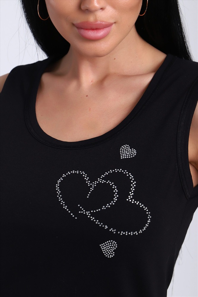 Производитель: НАТАЛИ ID товара: 986532 Состав: 92% Хлопок; 8% Лайкра Сезон: Весна/Лето Длина: Средняя Фасон: Облегающий Рукав: без рукавов Вырез горловины: Округлый Рисунок: Сердца Декоративные элементы: Стразы Основная ткань: Хлопок Стиль: повседневный Вид ткани: Кулирка с лайкрой Страна бренда: Россия Страна производства: Россия