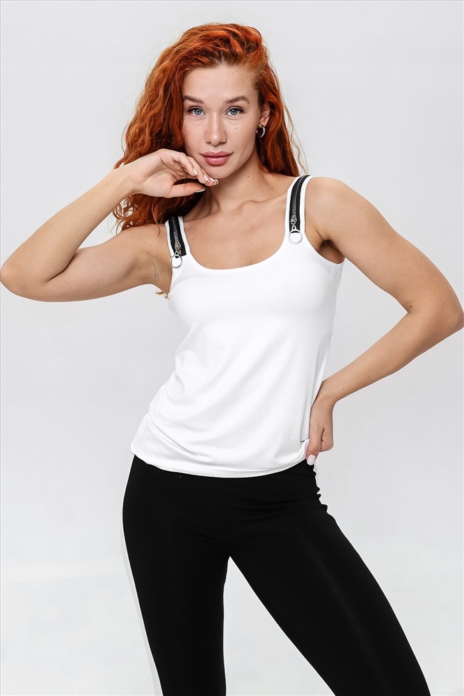 ID товара: 1019077 Состав: Вискоза 92%, Лайкра 8% Сезон: Весна/Лето Длина: Средняя Фасон: Облегающий Рукав: без рукавов Вырез горловины: Каре Стиль: повседневный Вид ткани: Вискоза пенье Страна бренда: Россия Страна производства: Россия Майка прилегающего силуэта, средней длины, с округлой горловиной. Бретели выполнены в виде молний. Горловина и проймы обработаны бейкой из основного полотна Комментарии к товару