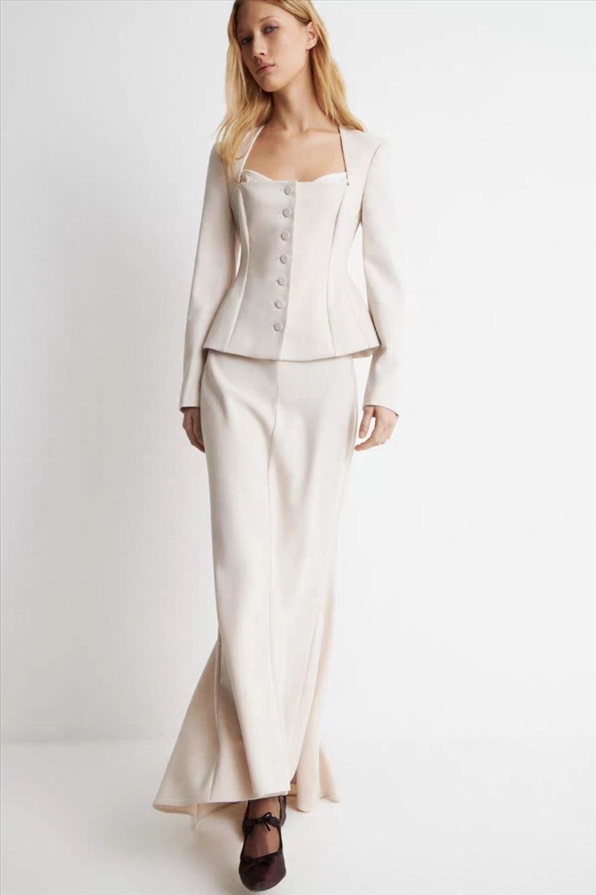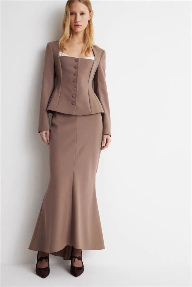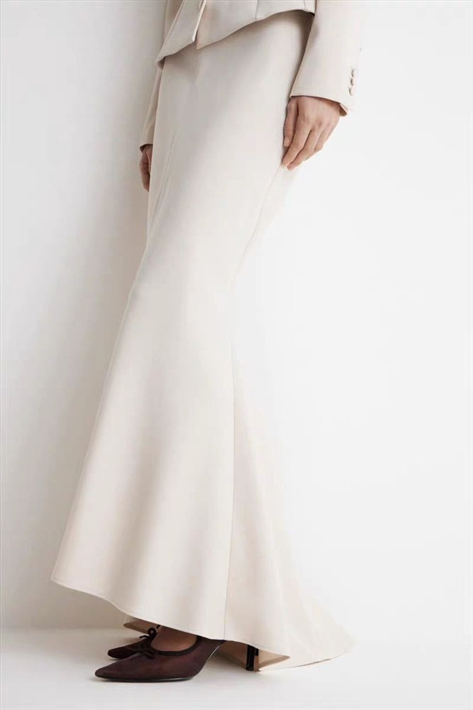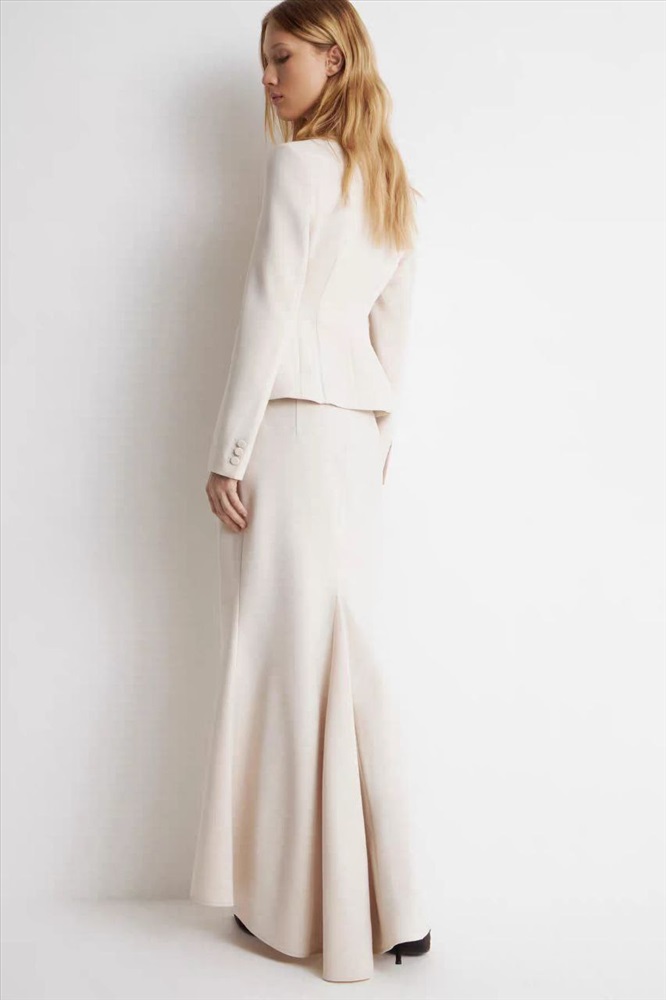 Юбка макси из твила с использованием шерсти. Прилегающий в бедрах и расклешенный к низу крой.