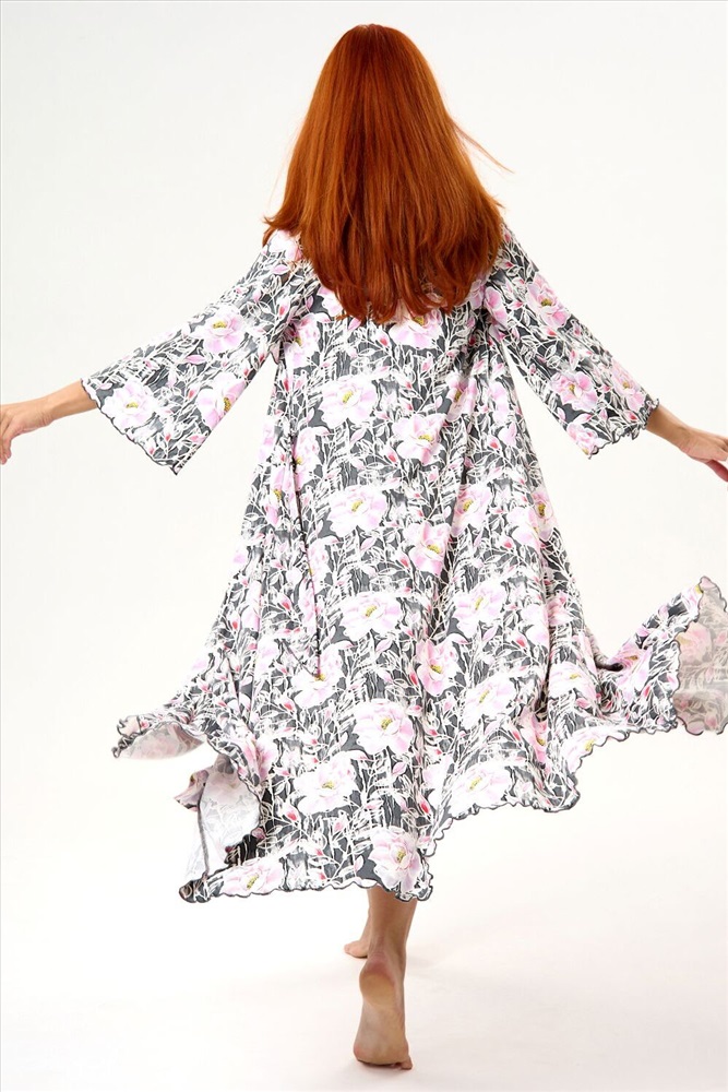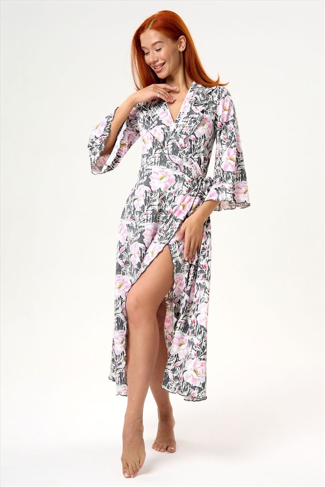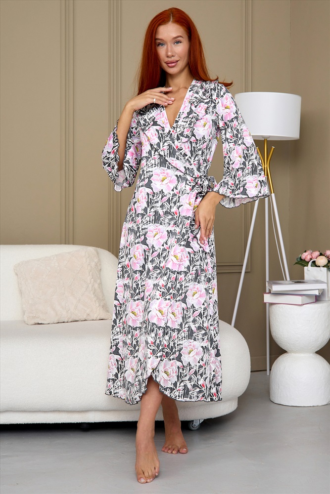 Халат домашний трикотажный женский - это отличное дополнение к вашей коллекции одежды для дома, созданной для тех, кто любит быть яркой и стильной, даже находясь в уютном уголке своего дома. Длинный халат с запахом имеет полуприлегающий силуэт, расклешенный к низу, длиной до середины икры. Линия талии завышена, что создает элегантный и изящный силуэт. На полочках, в области груди, расположены изящные воланы, которые добавляют изюминку к образу, подчеркивая женственность. Рукав в тачной, длиной 3/4, смотрится легко и элегантно, это делает его удобным в использовании. Подойдет как стройным женщинам, так и дамам с пышными формами. Идеально для подарка. Благодаря крою подойдет на маленькие и большие размеры, беременным и кормящим мамочкам. Возьмите халатик в роддом и будете самой элегантной мамочкой. Наш халат это идеальный выбор для приятного времяпрепровождения в уютной обстановке. Сочетая в себе красоту и удобство, он идеально подходит для женщин, которые ценят качество во всем.