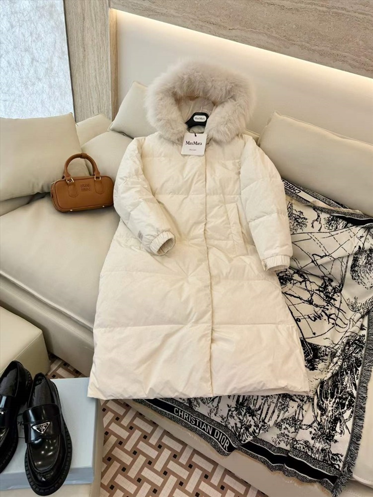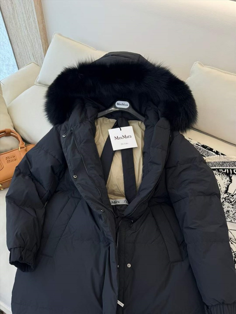 Max Mara длинный меховой воротник с большим меховым воротником, очень теплый и утолщенный пуховик из 90% белого гуся, распродажа
