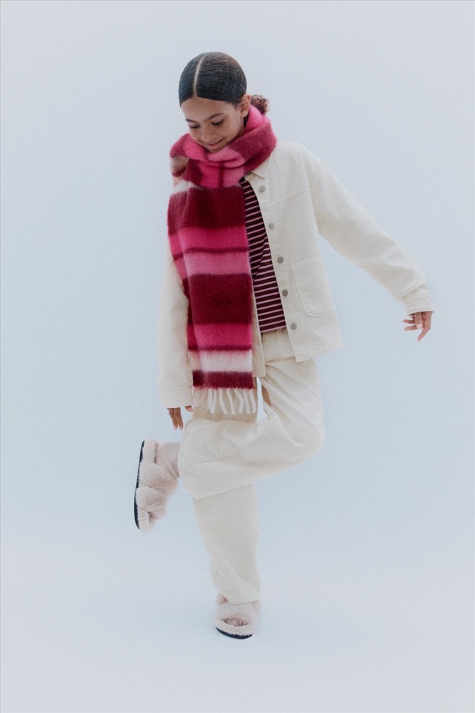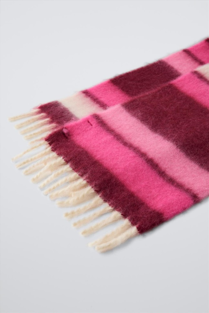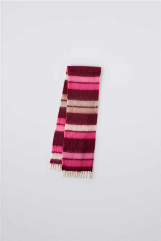 Striped scarf with fringed edges. COMPOSITION, CARE & ORIGIN COMPOSITION OUTER SHELL 59% polyester Which contains at least: OUTER SHELL 59% RCS certified recycled polyester CERTIFIED MATERIALS RCS CERTIFIED RECYCLED POLYESTER Nowadays, recycled polyester is mainly made from PET plastic waste. This is a type of plastic that is widely used in a variety of items, such as plastic bottles. Using recycled materials helps limit the production of virgin polyester fibre. It is certified to the Recycled Claim Standard (RCS), which verifies the recycled content and tracks it from source to final product. Certified by Intertek 193341 More information CARE Caring for your clothes is caring for the environment. Only wash your garments when necessary; sometimes you only need to freshen them up. Since washing slowly deteriorates fabrics, if you wash your garments less often, you can lengthen their life and reduce the consumption of water and energy used in care processes.