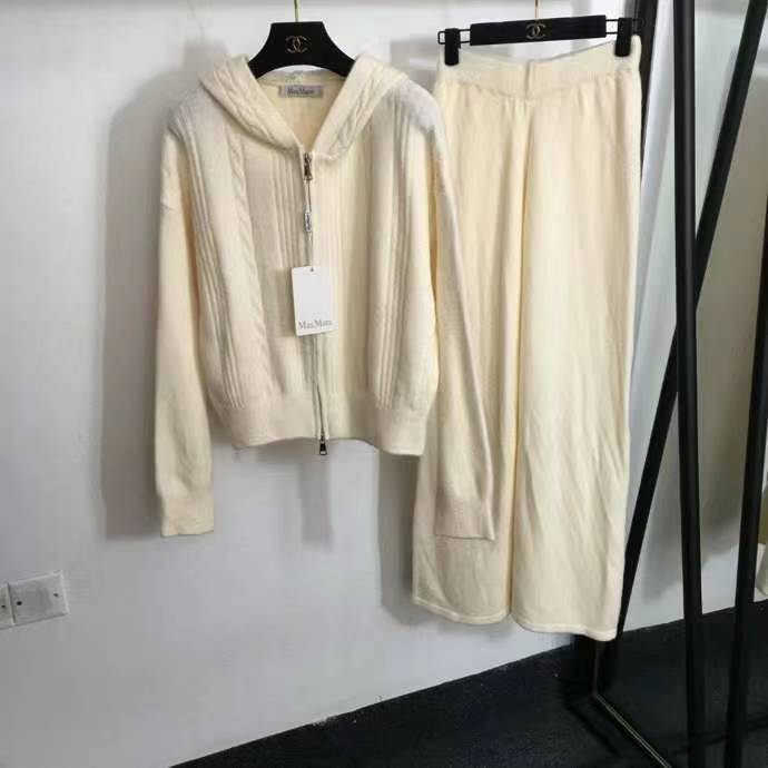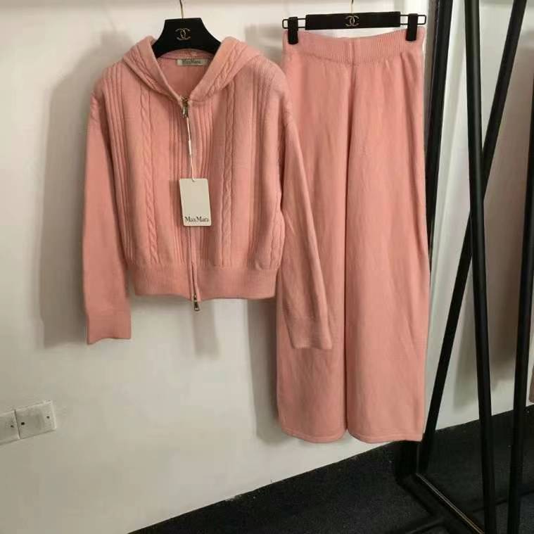 MaxMar* новый вязаный спортивный костюм, толстовка с высоким воротником и длинными рукавами с полумолнией + повседневные брюки, белый, розовый, черный, темно-коричневый, серый, абрикосовый, [один размер подходит всем, ширина плеч 60, обхват груди 120, длина рукава 55, длина одежды 58; талия 66, резинка, длина 101]