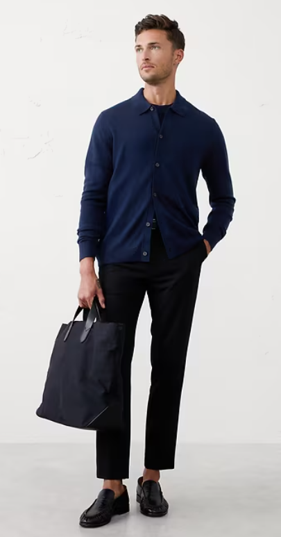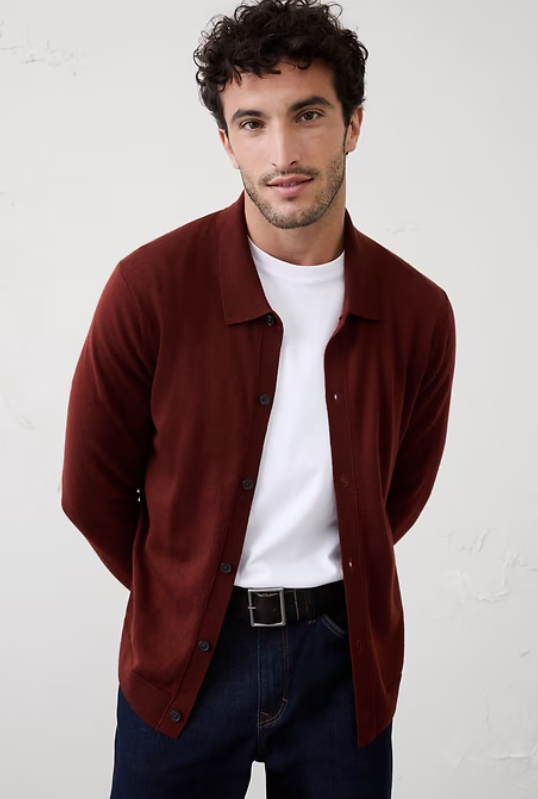 Merino Wool Button-Through Polo Sweater