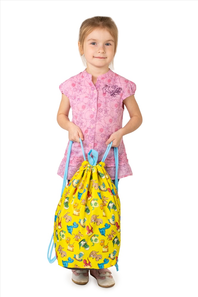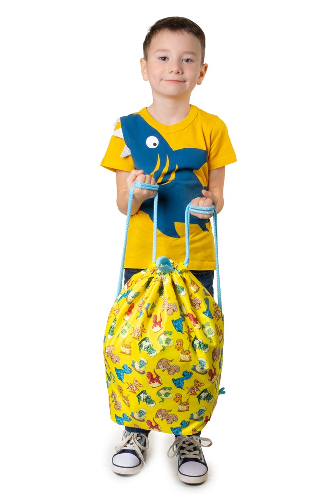 Модель: Мешок для обуви объемный Динозавры желтый фон