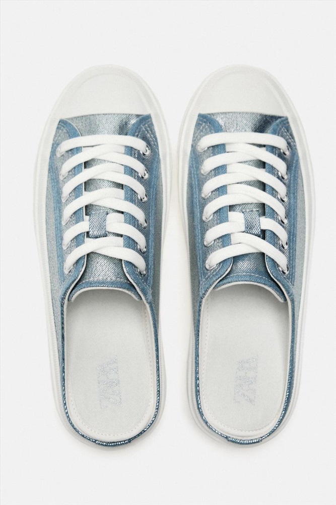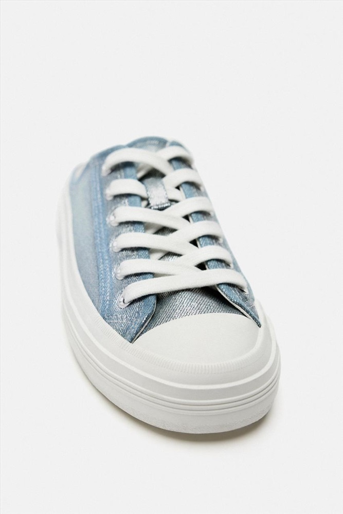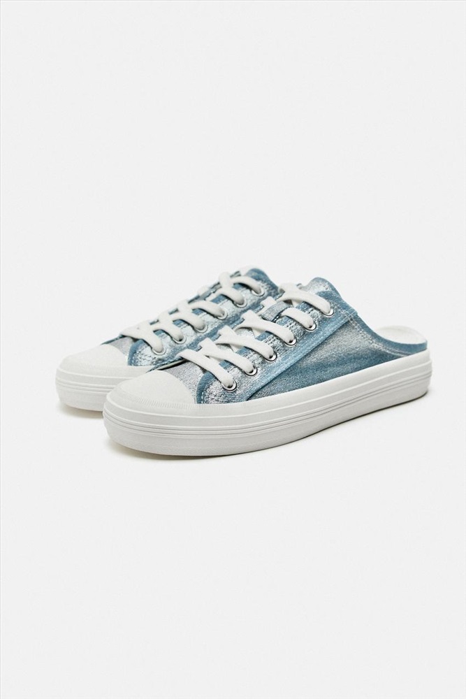 METALLIC DENIM MULE TRAINERS